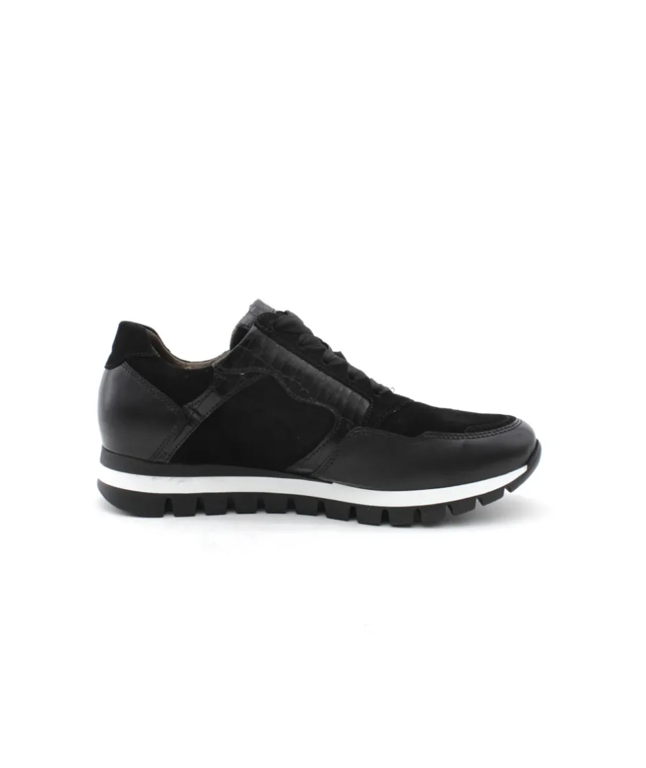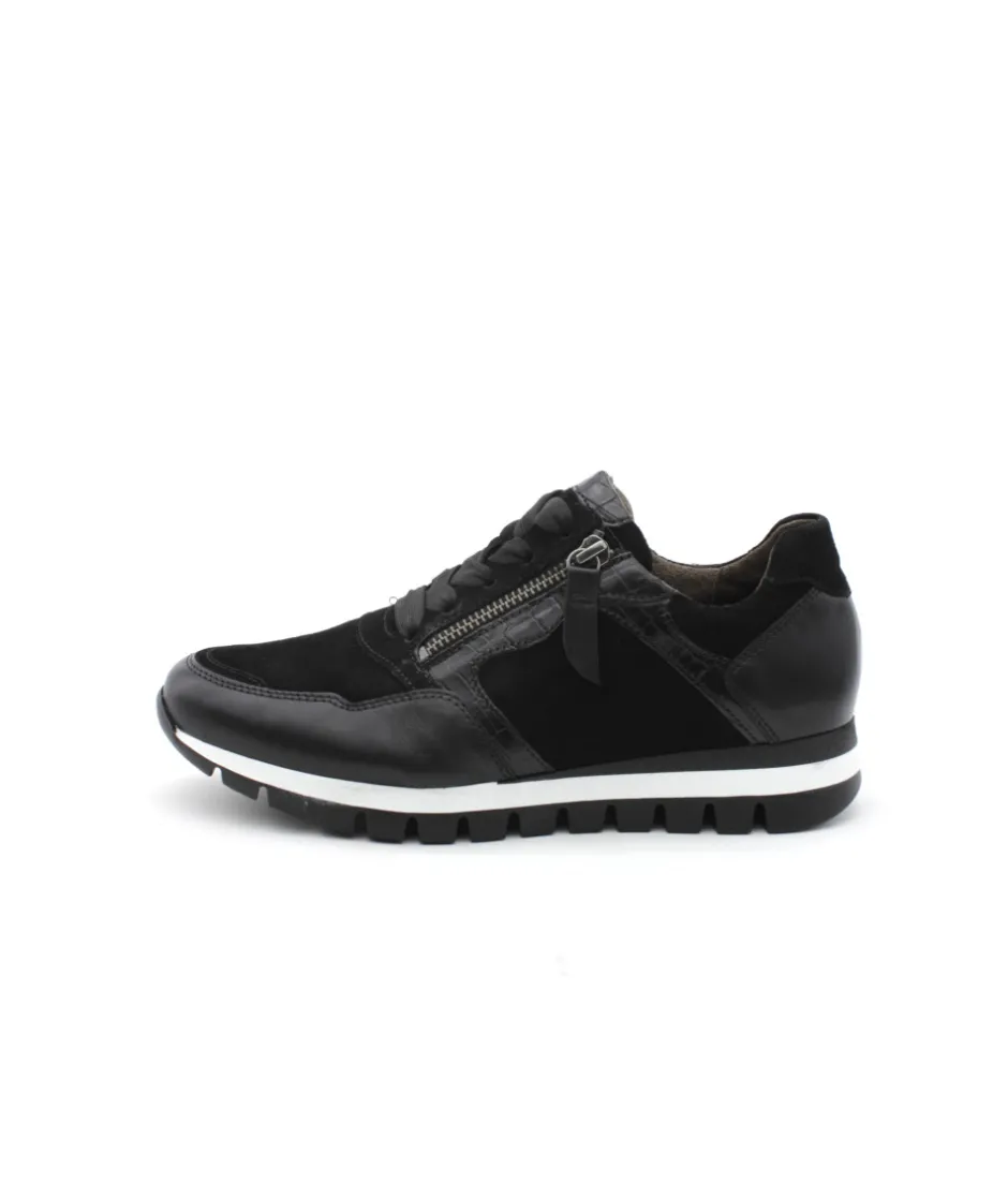 À chaque femme sa paire de basket. Cette fois, nous vous présentons la nouvelle GABOR 36.438.67 en cuir velours noir accompagnée d’empiècements en cuir lisse et croco. Chic et élégante, cette paire de sneaker confortable se montre à l’aise dans toutes les situations grâce à sa semelle rainurée qui offre beaucoup de souplesse. Son lacet viendra s’ajuster à votre pied tandis que ses zips de fermetures vous faciliteront l’enfilage. Plus de doute, c’est la paire qu’il vous faut !