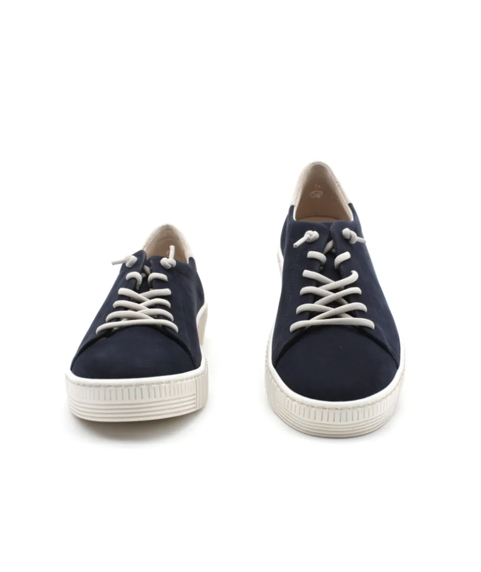 Nouvelle déclinaison de la basket phare de GABOR. Pour cette nouvelle saison, la maison allemande relance sa sneaker sport chic 43.331.16 en cuir bleu marine qui lui donne un look moderne et indémodable mais cette fois, fini le zip et le lacet plat, voici la version lacets élastiqués ! Son cuir velours apporte beaucoup de souplesse tandis que son lacet maintienne le pied pour un maximum de confort. Vous ne serez jamais déçu par ce modèle !