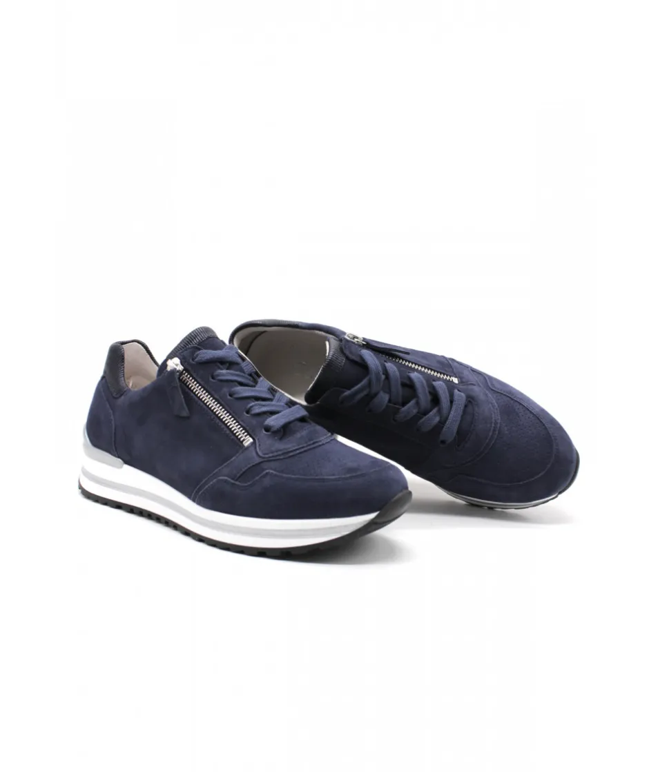 La maison allemande GABOR nous dévoile sa dernière création, le modèle 86.528.26 dans son coloris bleu marine vous fera craquer par sa légèreté et son confort de marche. Avec une semelle amovible, un zip de fermeture et un lacet ces sneakers sport chic deviennent le modèle pratique et tendance qu’il vous faut !