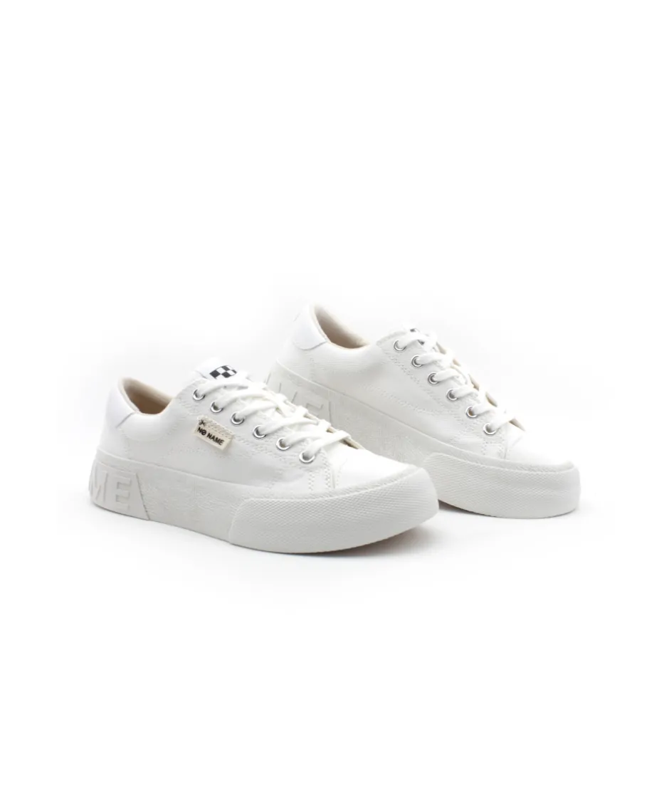 Découvrez la RESET SNEAKER en toile blanche ou abricot, alliant style rétro et confort moderne. Sa tige en textile associée à la date de la création de No Name sur le contrefort, repose sur une semelle légère en caoutchouc recyclé, avec une semelle intérieure amovible en liège pour une sensation légère, isolante et respirante. La sneaker parfaite pour ajouter une touche de glow à votre look quotidien.