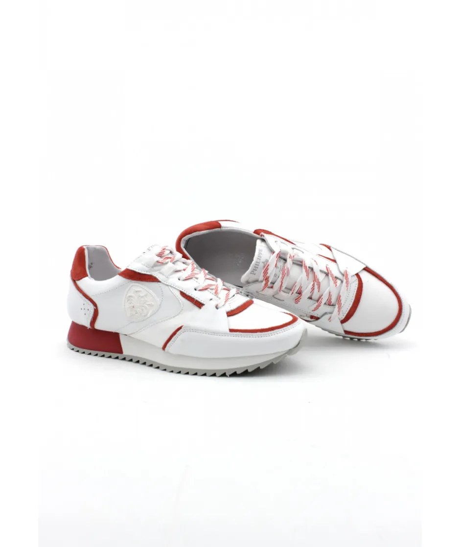 Pari réussi pour PHILIPPE MORVAN, qui vous propose une chaussure sport dans un look élégant : Le modèle RAVOX, stylé et avant-gardiste qui s’habille d’un mix de cuir et de textile blanc et rouge sur une épaisse semelle blanche.