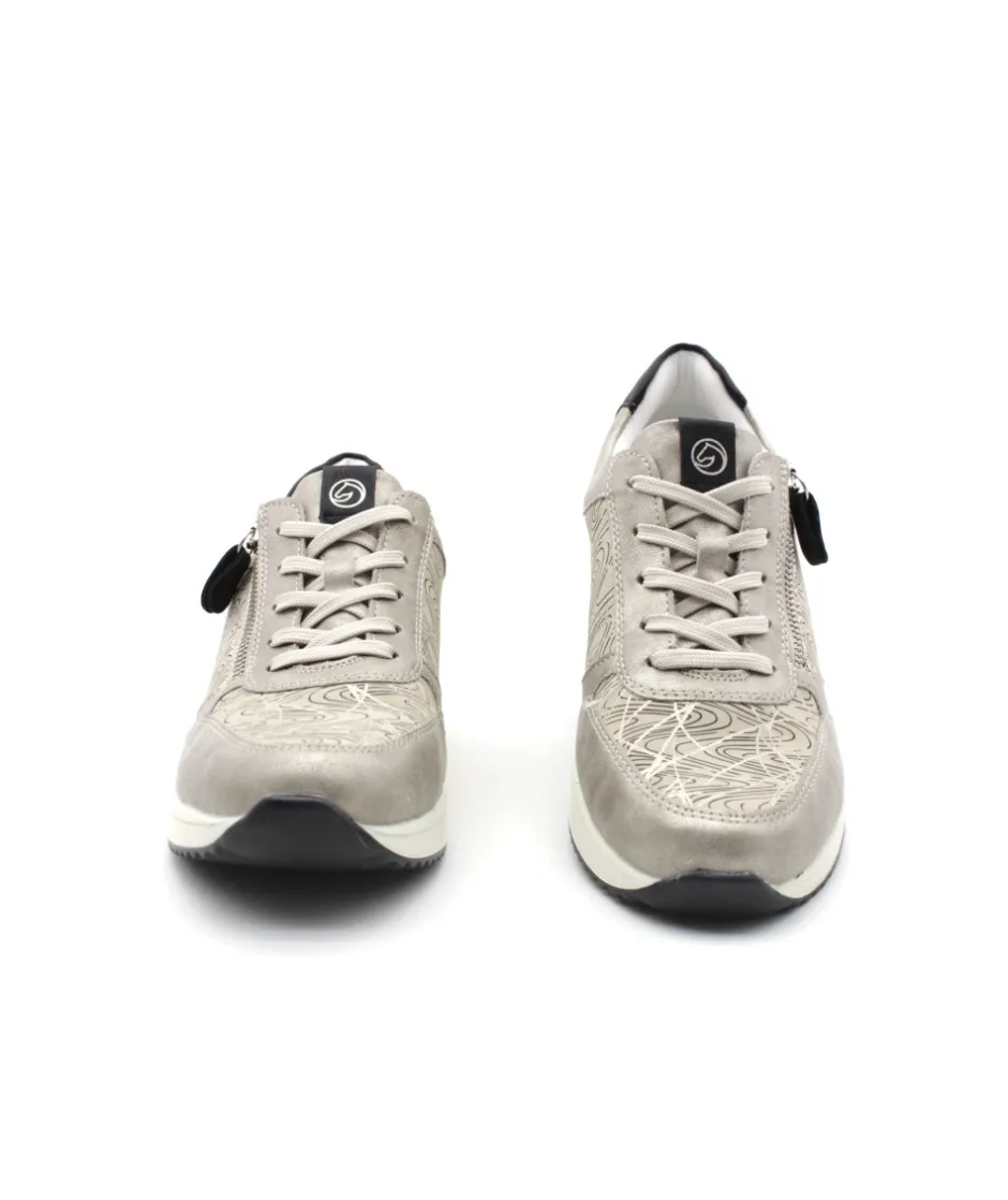 Pour se sentir libre, adopter Remonte !!! Remonte D2400-60 est une tennis femme en cuir couleur argent platine. Cette tennis Remonte est facile à chausser grâce à son lacet et sa fermeture éclair. Ce modèle de tennis Remonte est doté d’une semelle amovible matelassée et d’un talon compensé. Idéale pour le quotidien, cette tennis s’adaptera parfaitement avec toute votre garde robe. Bonus : elle embarque avec elle la technologie Lite’N Soft : Plus de largueur sur la chaussure, semelle amovible, soutien de voute plantaire, légère et souple.