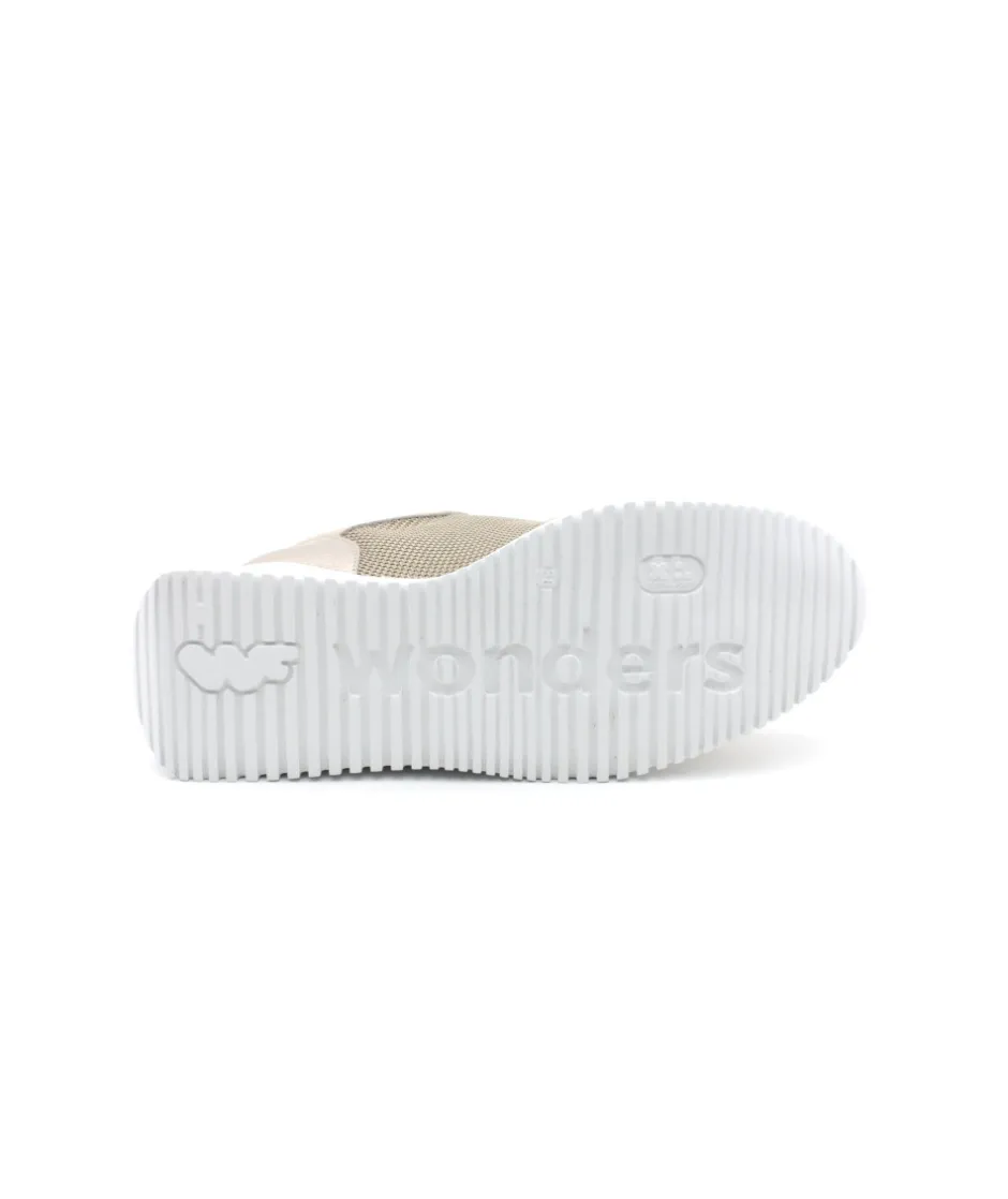 À la recherche d’une sneakers audacieuse qui ne manque pas d’originalité ? Voici pour vous la création G6604 en cuir et toile beige. Un look atypique associé à une semelle blanche au talon imposant, le tout accompagné d’un contrefort couleur or, encore une superbe création de la maison espagnole Wonders. Chez L’Empreinte, on est fan du mélange de matière qui lui offre un style sport chic.