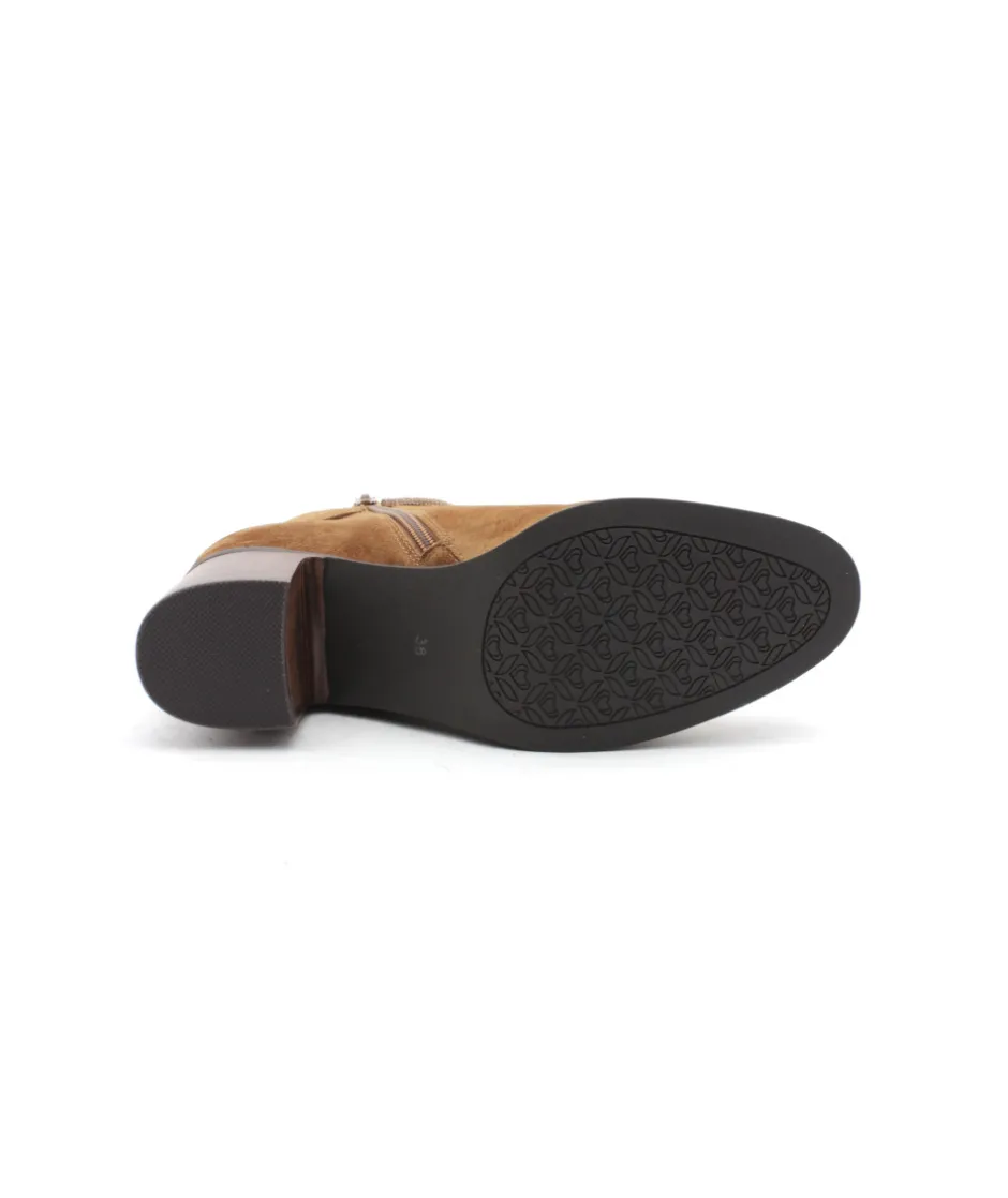 À la recherche d’une bottine à talon chic et féminine ? La maison Mamzelle a créé pour vous le modèle OVINO en cuir noir et velours camel sur un talon de 6 cm, parfait pour vous offrir une cambrure élégante et confortable à la fois. Son cuir souple et sa semelle en gomme vous apportera toute l’aisance nécessaire pour pouvoir porter les boots à n’importe quelle occasion. On aime sa boucle de cheville et son zip intérieur pour la praticité.