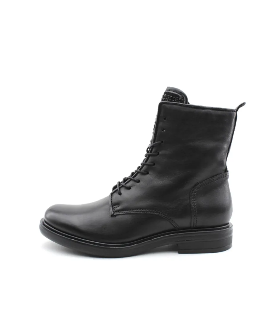 Immanquable de la collection, Mjus revient cette saison avec cette jolie bottine pour femme en cuir noir. Le modèle M64235 s’équipe d’une semelle épaisse en gomme pour un confort accru, d’un lacet pour un serrage optimal et d’un zip intérieur pour plus de praticité lors de l’enfilage ! Rien de mieux pour affronter l’hiver et garder les pieds au chaud grâce à sa doublure en textile recyclé. On aime les bijoux sur le haut de la languette qui affirme un look plus féminin.