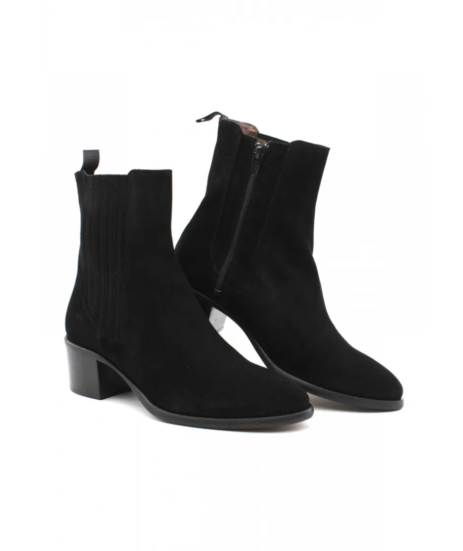 La marque Muratti est de retour cette saison avec cette sublime boots à talon décroché. ROCQUEFORTS S1084F se décline en cuir velours noir pour un look moderne, féminin et ultra-tendance. Son talon de 5 cm vous fera prendre de la hauteur en vous offrant une cambrure idéale pour la journée, tandis que sa tige élastiquée maintiendra votre cheville dans la chaussure.
