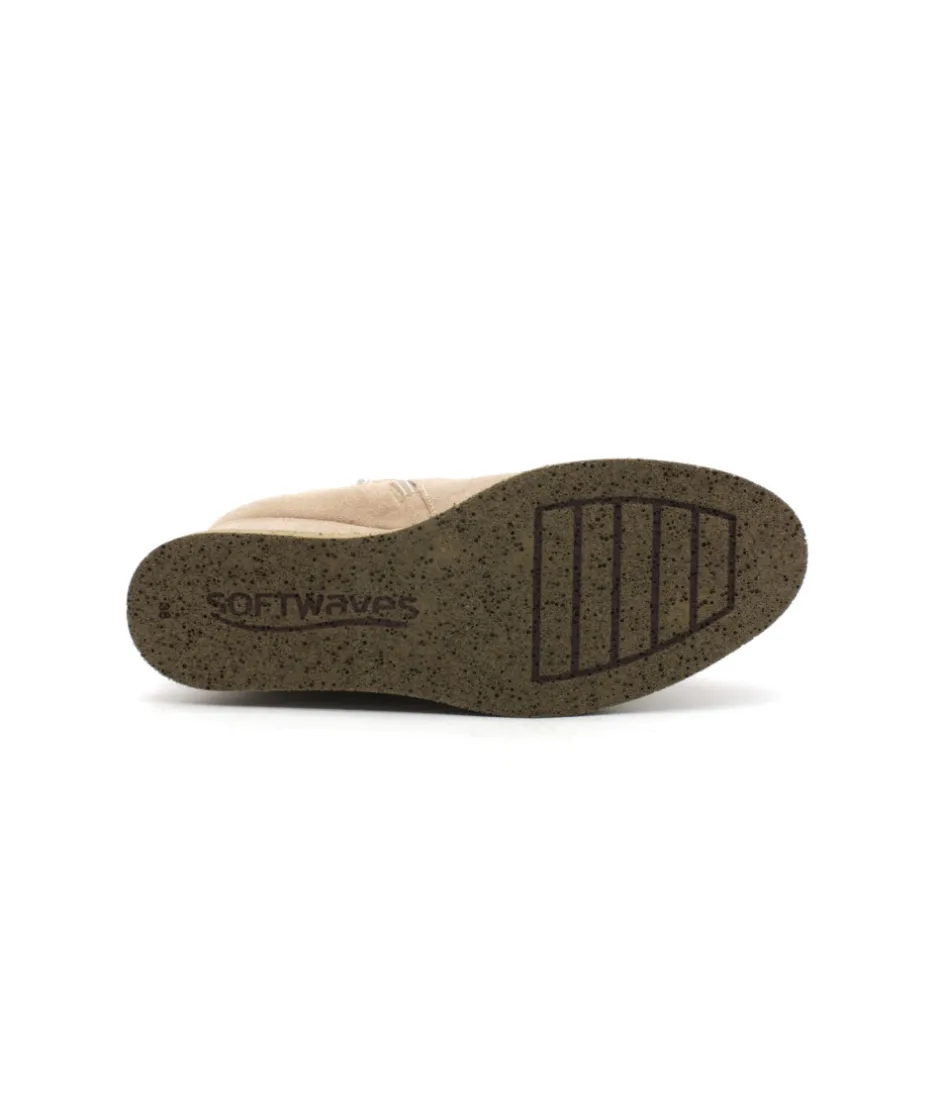 Softwaves vous présente sa dernière création 8.65.10/05 ARIAT, une magnifique bottine à talon compensé en cuir velours sable. Montée sur une semelle en gomme qui offre un superbe amorti et beaucoup de légèreté, ces boots s’emparent de toutes les dernières tendances avec une semelle originale recouverte du même velours que l’ensemble de la chaussures et d’un zip intérieur qui apporte quant-à lui beaucoup de praticité lors de l’enfilage.