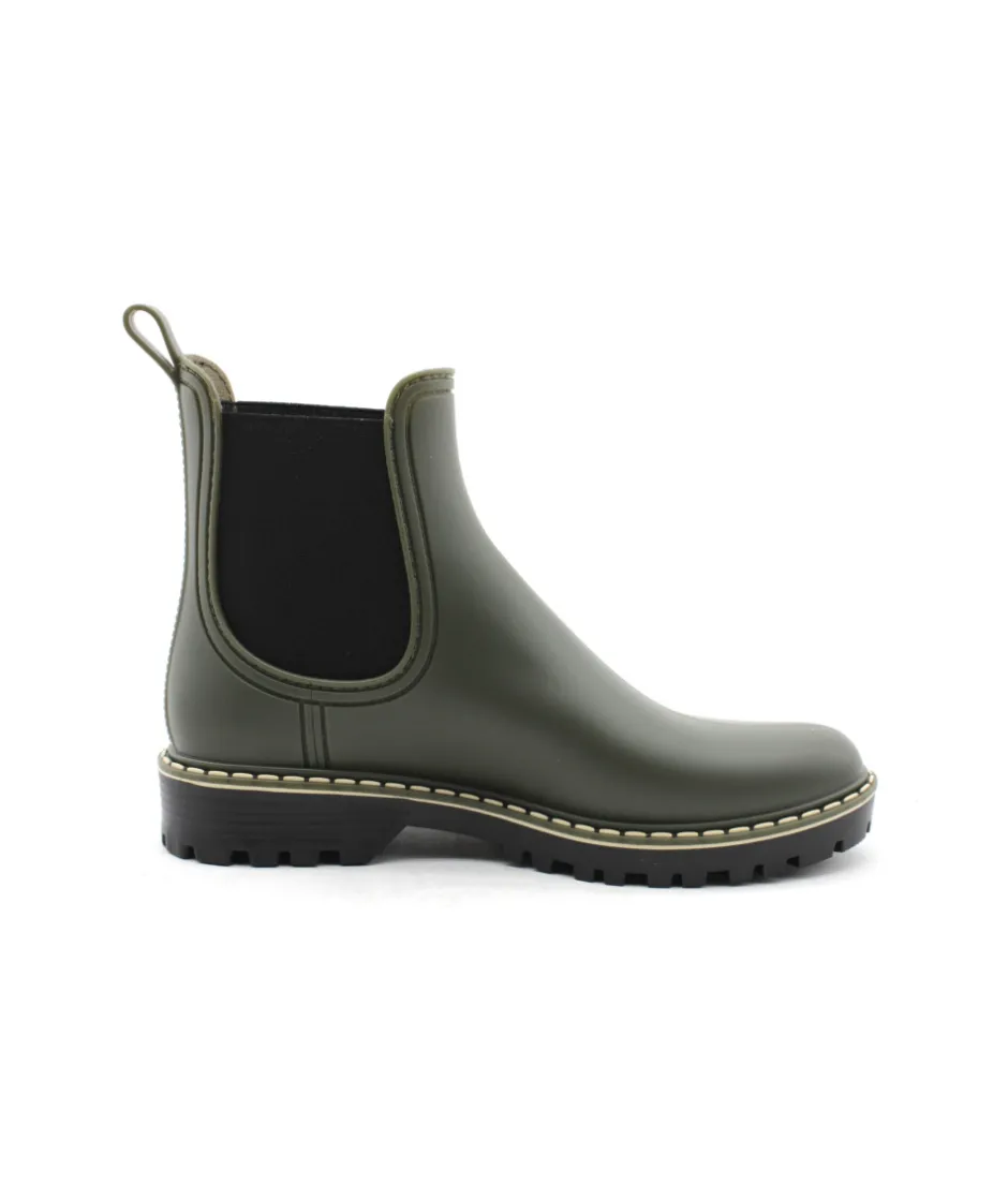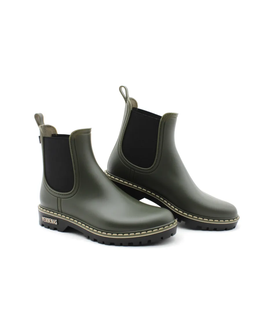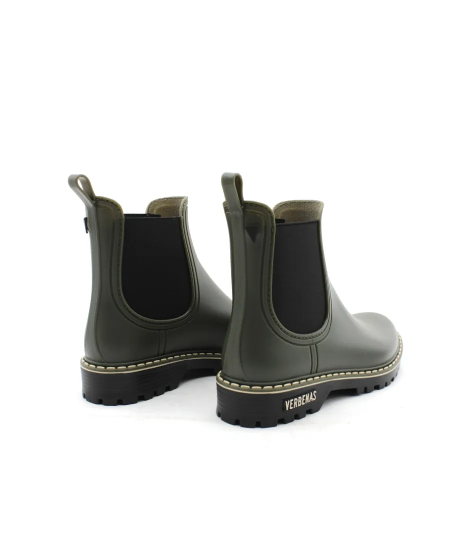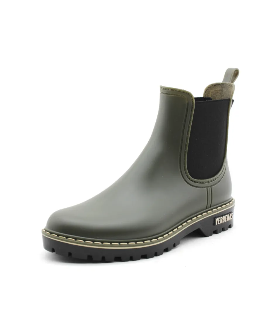 Verbenas vous présente son modèle phare, la bottine de pluie GAUDI DOWNTOWN en caoutchouc couleur noir ou kaki avec ses surpiqures claires. Avec son look bien a elle, ajoutez une touche de style à vos tenues sans oublier l’aspect pratique, aucune flaque d’eau ne pourra vous arrêter tant que ces bottines seront dans vos pieds…Toujours avec beaucoup de modernité, la maison espagnole nous propose une jolie bottine qui égaiera les journées pluvieuses.