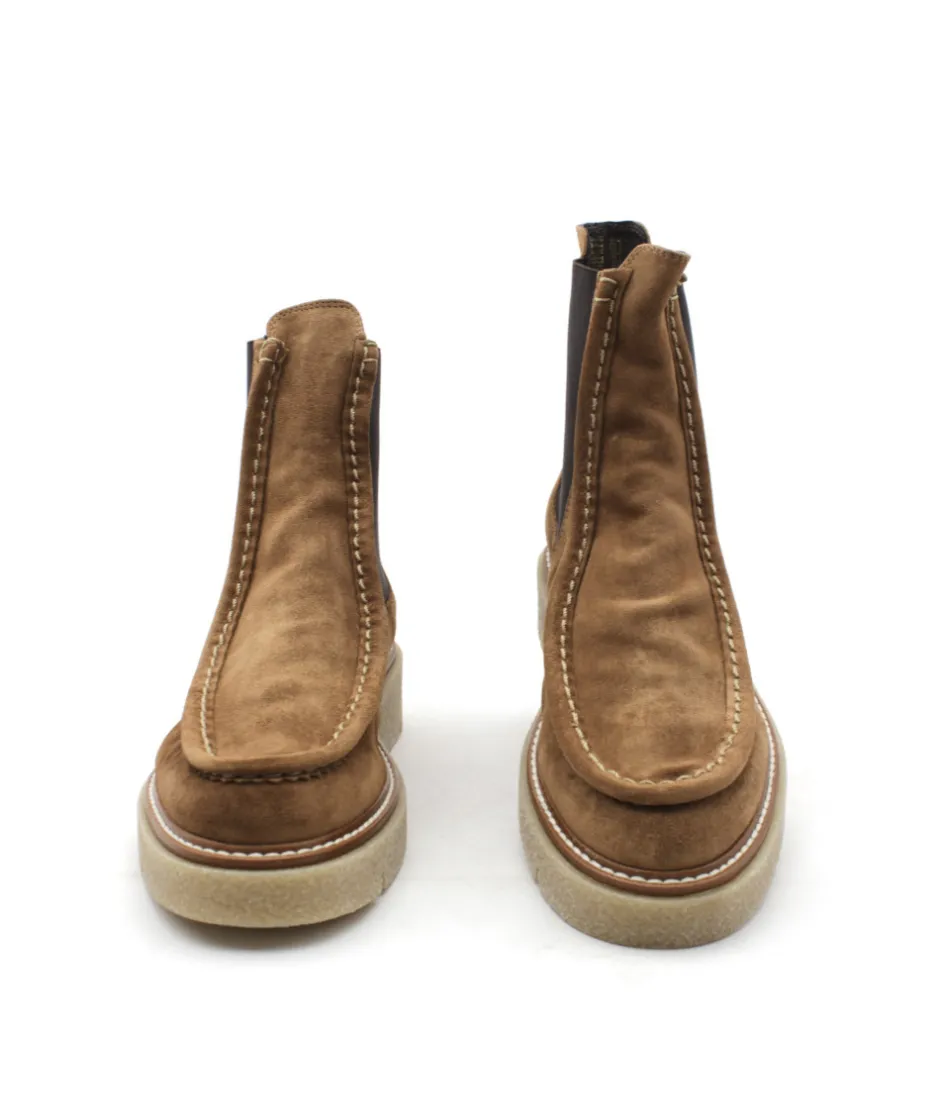 Weekend reviens en force cette saison avec ses modèles ultra originaux ! 26250 se décline en cuir velours marron et platine pour vous offrir une bottine facile à porter, en toute circonstance. Chic et élégante avec son jointé bourrelet qui remonte sur la tige, cette boots ne manque pas de caractère. On aime ses élastiques qui offre plus de facilité d’enfilage et sa semelle crêpe pour le confort !