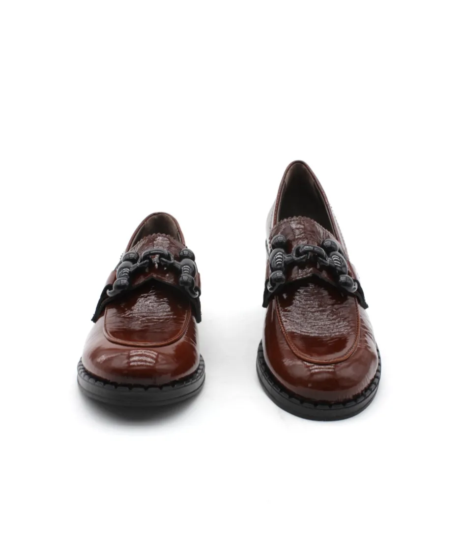 Bonne nouvelle ! Mjus nous dévoile sa nouvelle création, un mocassin plein de charme avec une semelle épaisse et une belle finition en « dentelle ». Le modèle T63102 en cuir vernis cognac ne manque pas de caractère pour attaquer les journées hivernales et vous promet un confort à toutes épreuves grâce à sa semelle légère. Son mord sur le plateau avant lui offre un look chic qui s’accordera avec vos tenues formelles et de tout les jours.