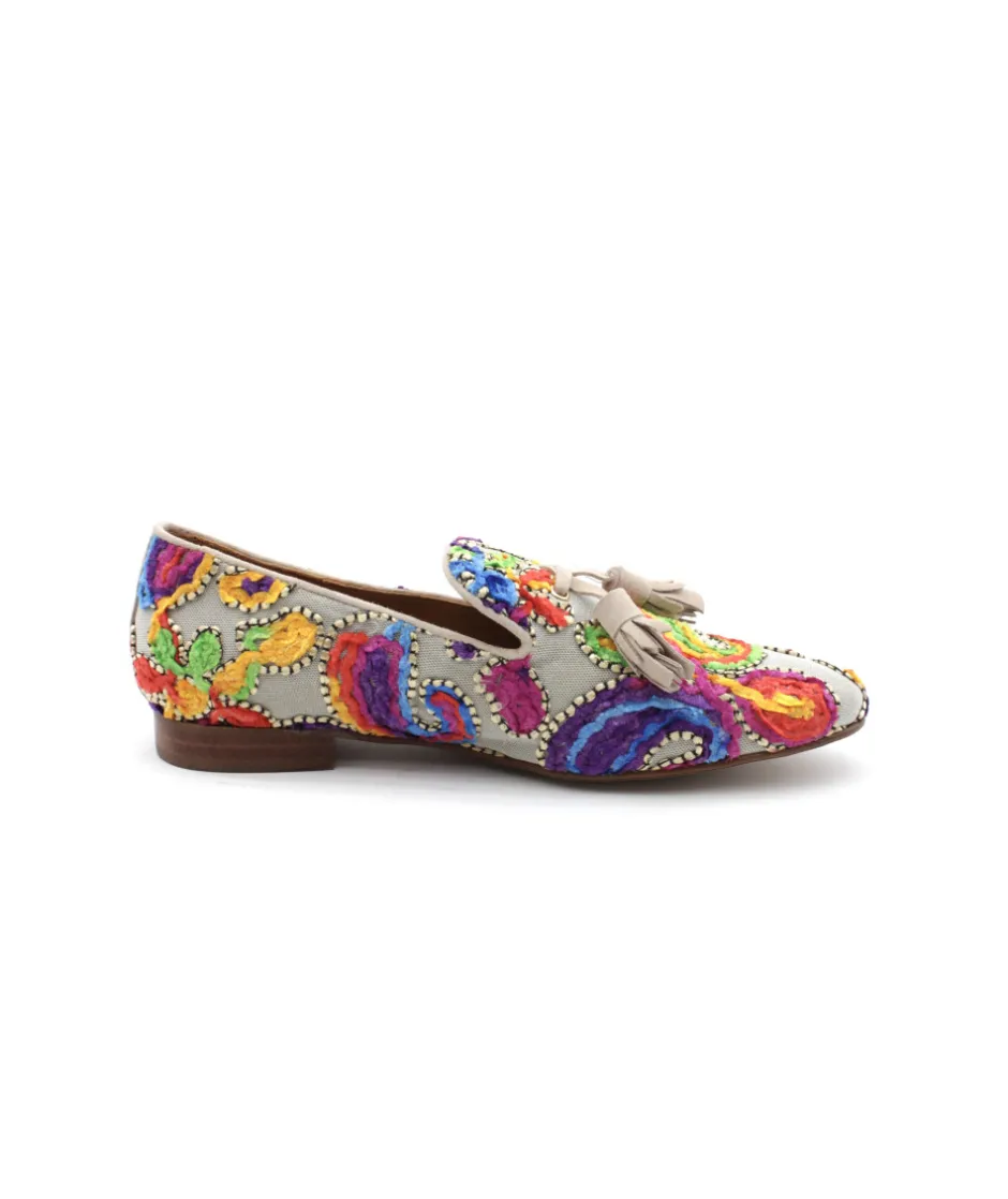 À la recherche d’un mocassin atypique pour la saison ? La maison espagnole Pedro Miralles nous dévoile un magnifique modèle multicouleur nommé 13577 TALIMA. En associant l’élégance d’un mocassin à un tissu atypique, le résultat ne manque pas d’originalité. On aime son pompon pour plus de chic ainsi que la souplesse et la légèreté de la semelle. Pas de doute, c’est le modèle qu’il vous faut !