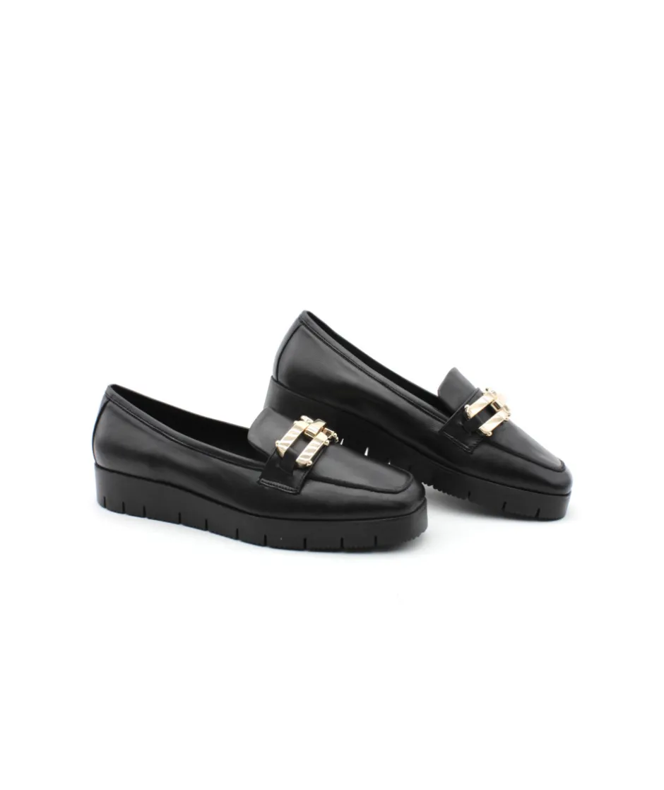 Joli mocassin en cuir noir chic et confortable. L’Empreinte Chaussures vous dévoile le nouveau modèle NEOR de la maison française Reqins et qui plaît déjà aux femmes à la recherche de modernité et d’élégance. Ce mocassin est une véritable pépite avec sa semelle compensée en gomme très légère et confortable ainsi que son mord doré sur le dessus du pied pour un rendu féminin. Un must have de la collection ! N’attendez plus…
