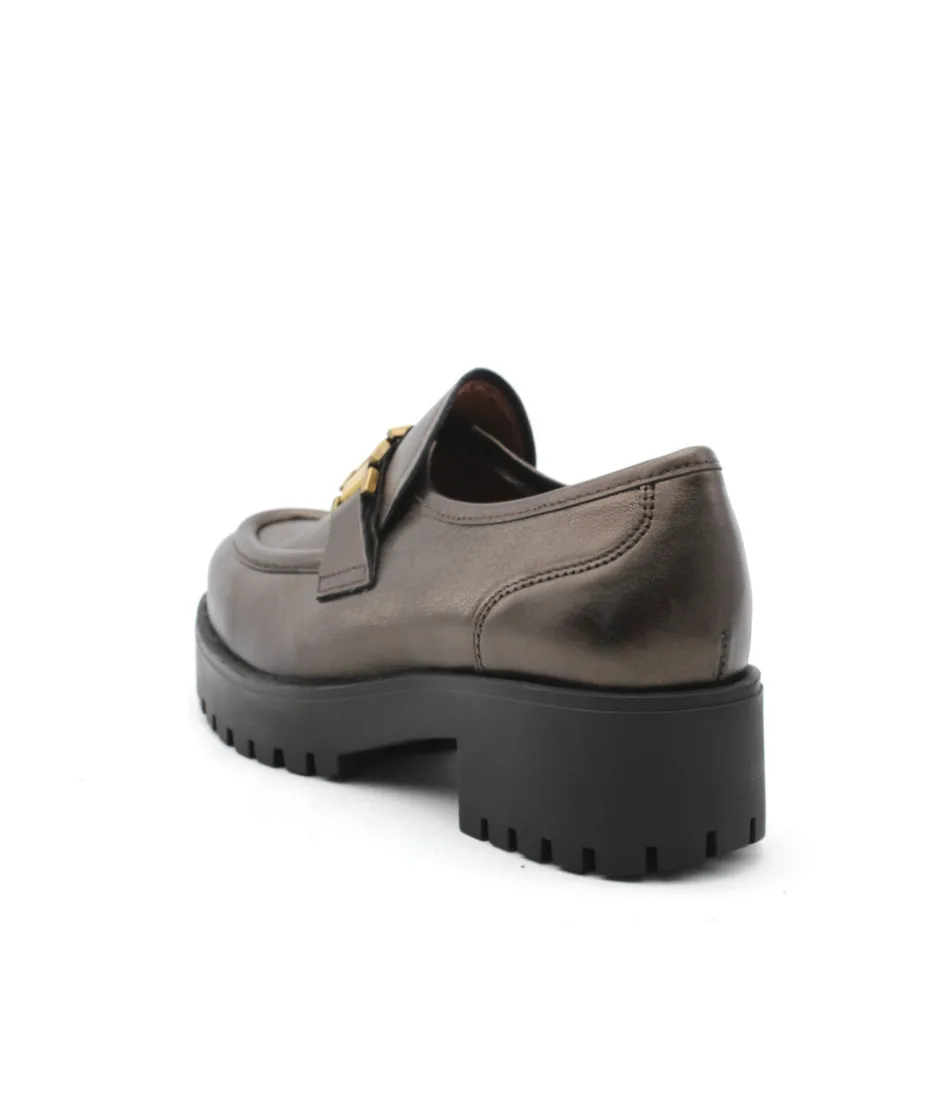 À la recherche d’un mocassin atypique, une couleur hors norme qui pourra facilement s’associer à vos tenues ? Ne cherchez plus… Voici le modèle JARNO J2174E en cuir bronze de la maison Rosemetal. Un mocassin en cuir confortable, assis sur une semelle en gomme épaisse de 4 cm pour un amorti optimal. Féminine avec son bijou tendance et rock avec son look extrême, cette chaussure vous fera craquer tous les matins…