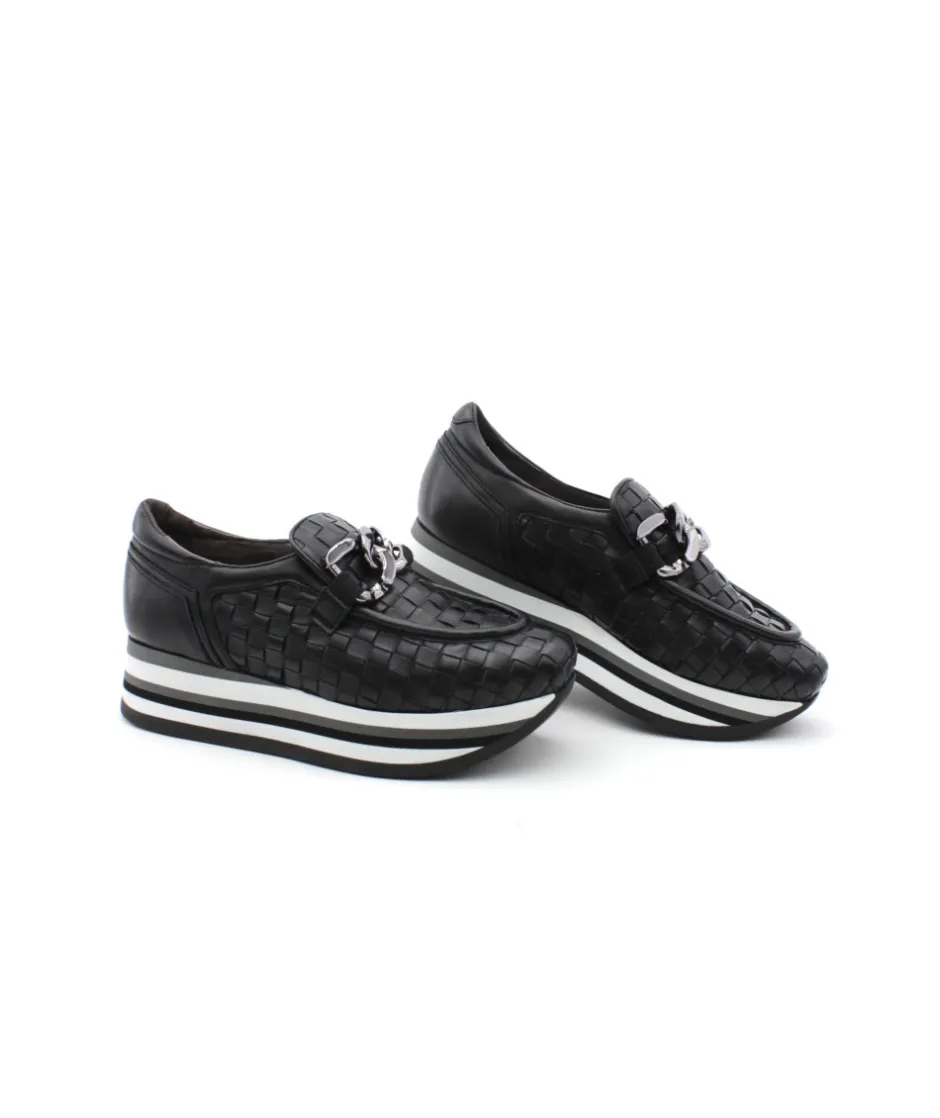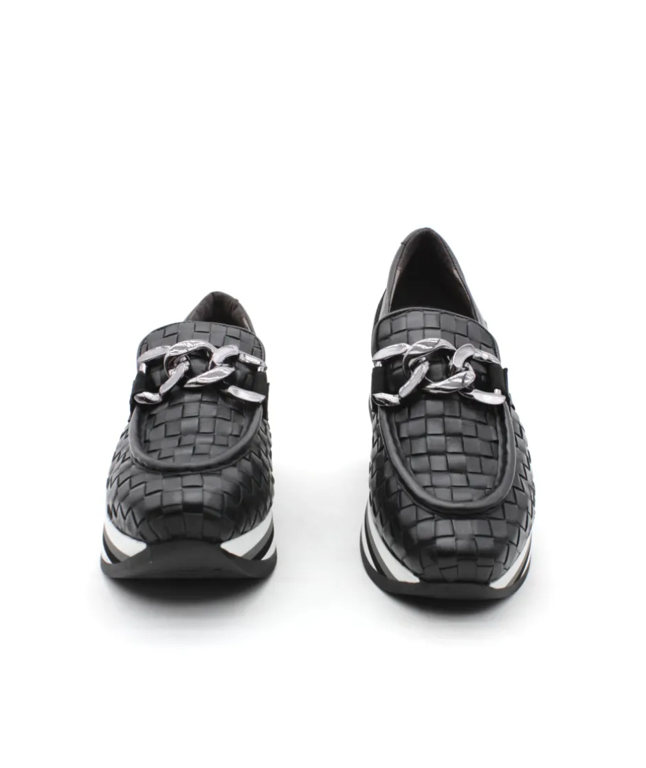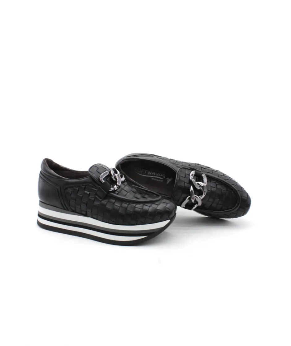SOFTWAVES propose le mocassin 7.78.59/00 ALANIS en cuir tressé noir pour les femmes soucieuses du bien-être de leurs pieds mais sans négliger pour autant le style. Véritable chaussures confortable et élégante, cette nouveauté associe une semelle de basket sur une forme mocassin, du jamais vu jusqu’à présent ! Ses élastiques situés sur le coup du pied vous offrirons beaucoup de maintien lors de la marche.