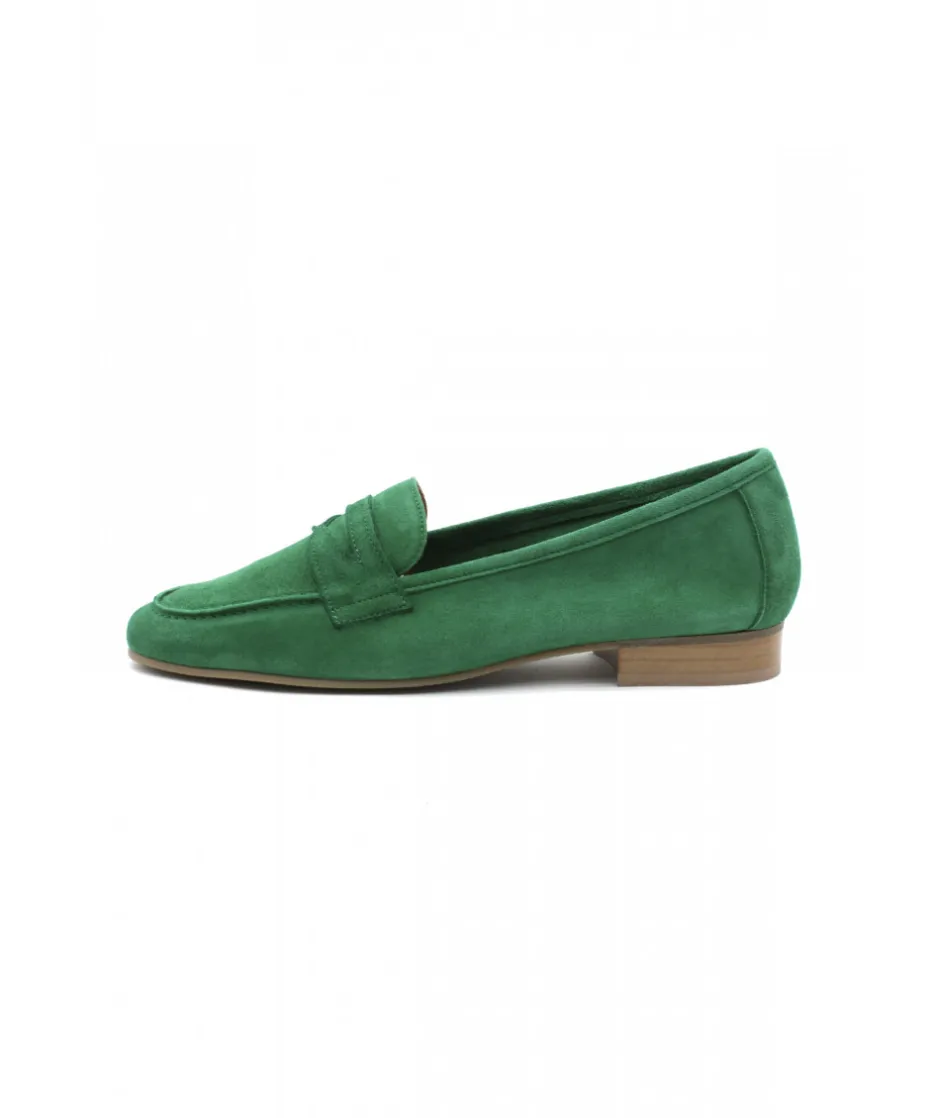 WE DO, une nouvelle marque chez L’Empreinte Chaussures, propose cette saison un mocassin très féminin en cuir velours bleu jeans, bleu marine, bleu électrique et vert, décoré d’un empiècement en cuir chic sur le dessus du plateau.