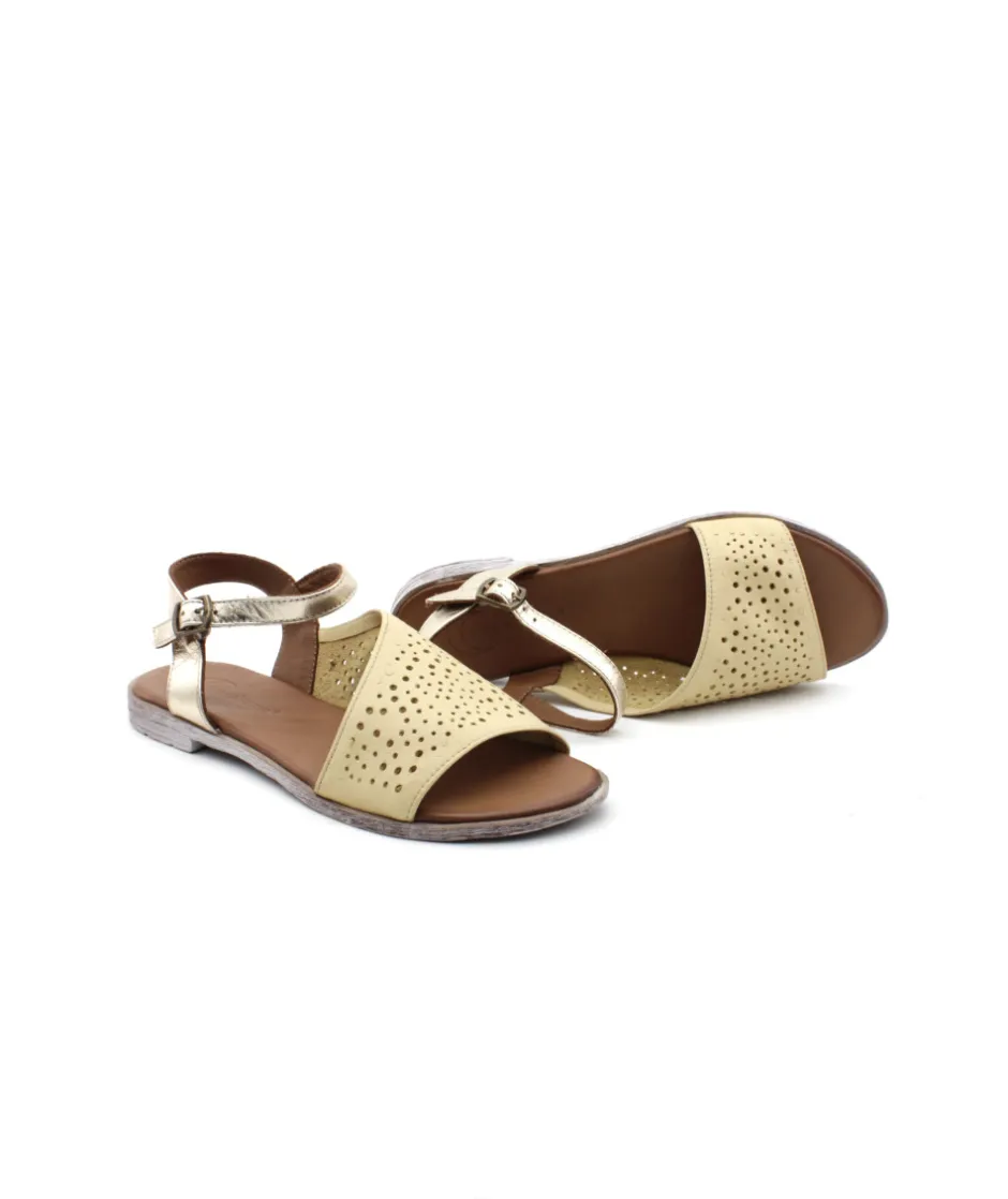 Jolie sandale plate pour un look chic et décontracté ? Voici la dernière création CAMILA en cuir marron ou jaune de la maison Lune et L’autre spécialiste des nu-pieds. Sur un petit talon en gomme pour l’amorti et le confort, la maison française est venus monter une bride ajourée prenant l’avant du pied et remontant sur le côté avant de rejoindre la bride cheville réglable pour un maintien optimal. Souple légère, elle sera votre meilleur allié pour cet été ! C’est le best seller de la marque, vous ne pouvez pas la laisser passée !
