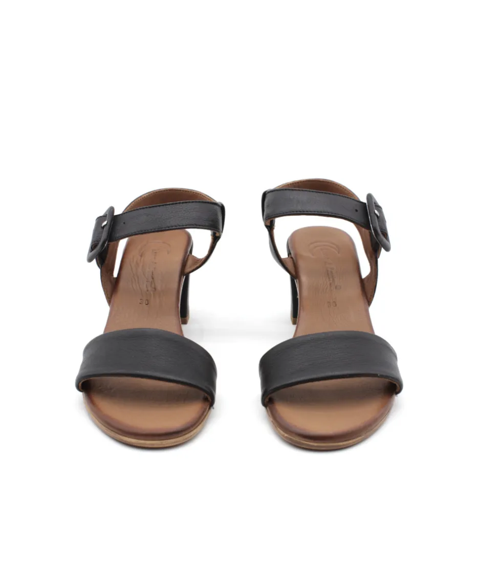 Envie d’une sandale à talon décroché confortable ? LUNE et L’AUTRE propose CORSICA en cuir noir, fuchsia et or sur un talon de 7 cm pour prendre de la hauteur avec élégance. Sa première en cuir vous offre un confort de marche indescriptible tandis que sa bride à boucle sur la cheville s’ajuste votre pied, et voilà, vous êtes prête pour l’été.