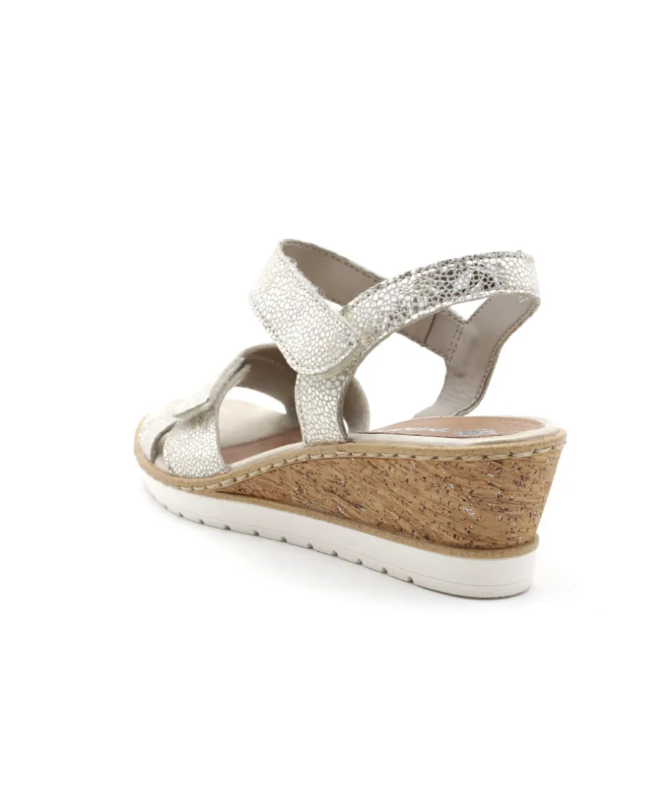 Un modèle qui ne manque pas d’arguments pour vous séduire, voici la nouvelle sandale R6252-91 de la maison Allemande Remonte. Une sandale en cuir or platine équipée d’une bride avant réglable par velcro, une bride cheville pour un maintien optimal, elle-même réglable par un velcro. On l’aime également pour sa légèreté, sa souplesse sur l’avant qui épouse la démarche et son confort ! Un sans faute !