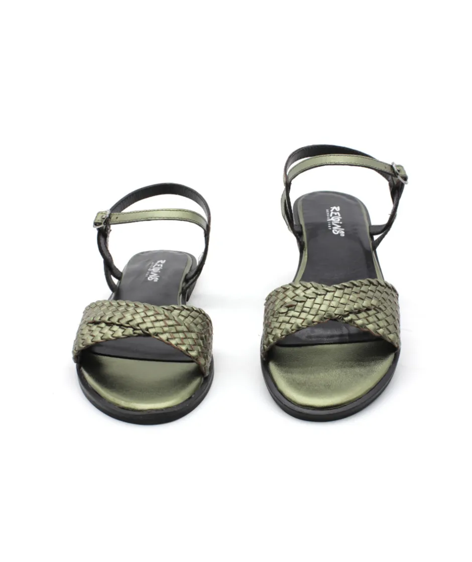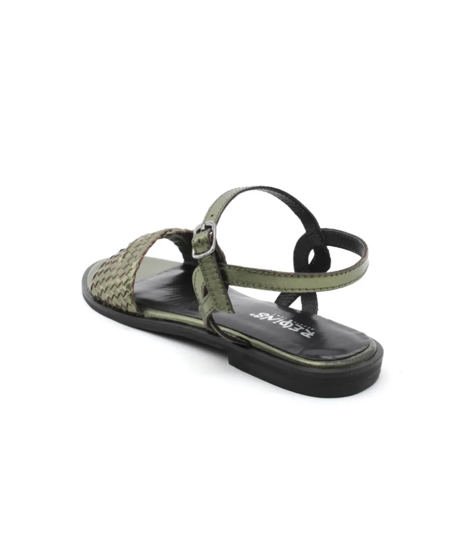 Sandales plates confortable, souple et légère ? Ne cherchez plus, REQINS a conçu pour vous le modèle parfait ! Avec sa semelle en gomme, son petit talon, sa bride avant en cuir tressé vert olive et sa bride cheville réglable, cette sandale est le bon compromis pour cet été en alliant confort, amorti, légèreté. On aime les jolies finitions apportées comme les croisements de lanières.