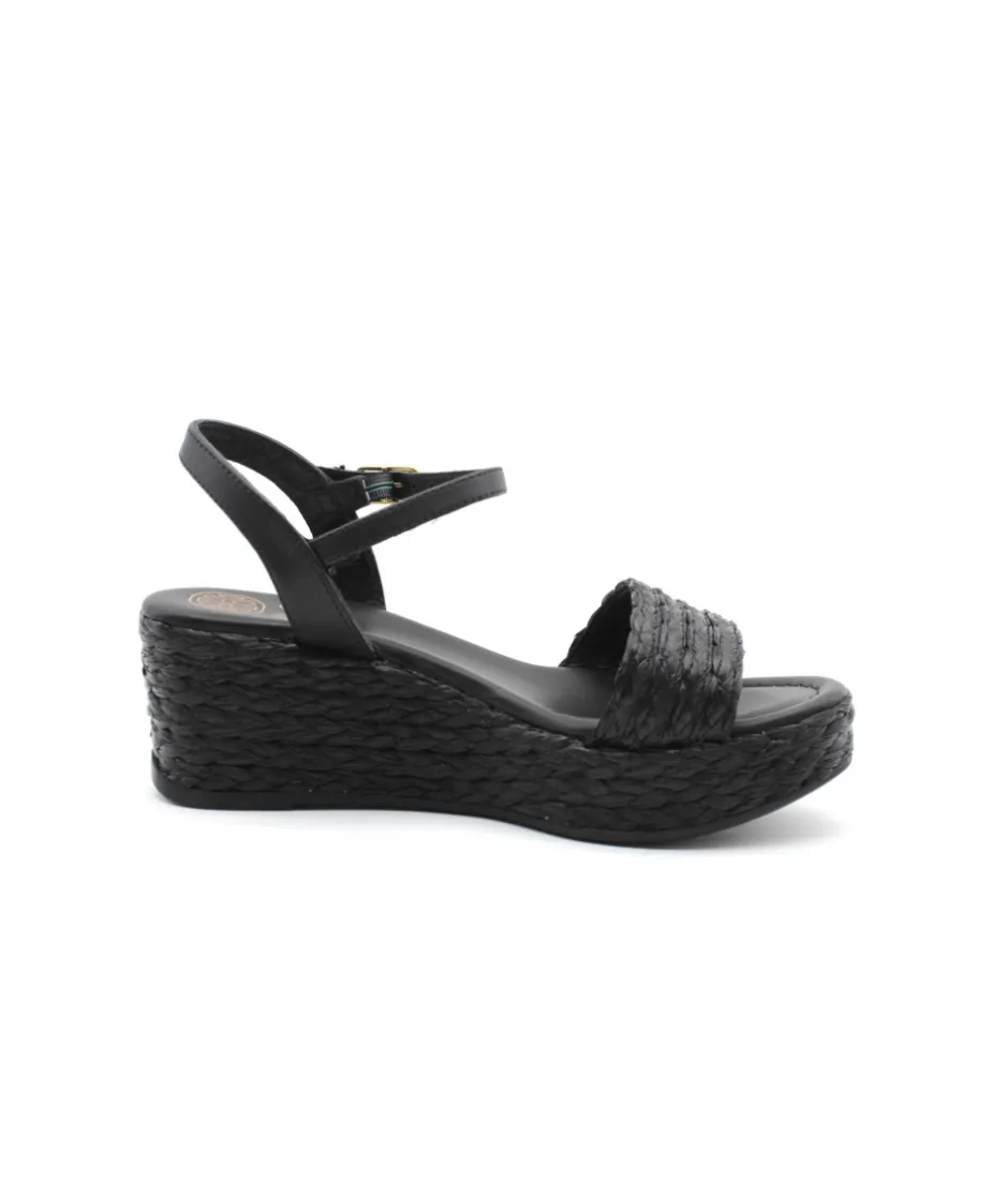 Jolie sandale sur la nouvelle semelle légère et confortable de la maison espagnole UNISA. Le modèle KEBEC se révèle dans un raphia beige ou noir, couleurs douces et tendances de cette année. La bride avant emboite votre pied avec beaucoup d’élégance et de féminité tandis que sa semelle moussée apporte du confort à cette sandale. On aime la semelle compensée vêtue elle aussi de raphia qui appuie le look décontracté et estival tandis que la bride cheville réglable maintien le pied au maximum.
