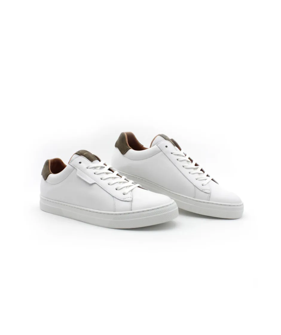 Indémodable, voici la basket à lacets Spark Clay Nappa blanche pour homme avec sa tige en cuir et sa semelle caoutchouc, ces baskets s’adapteront parfaitement à un style Sportwear. Cette nouvelle version s’habille d’un superbe cuir lisse, d’un contrefort vert velours assorti à la languette, rien de plus, elle est parfaite ! Chic et élégante, elle est faite pour vous messieurs.