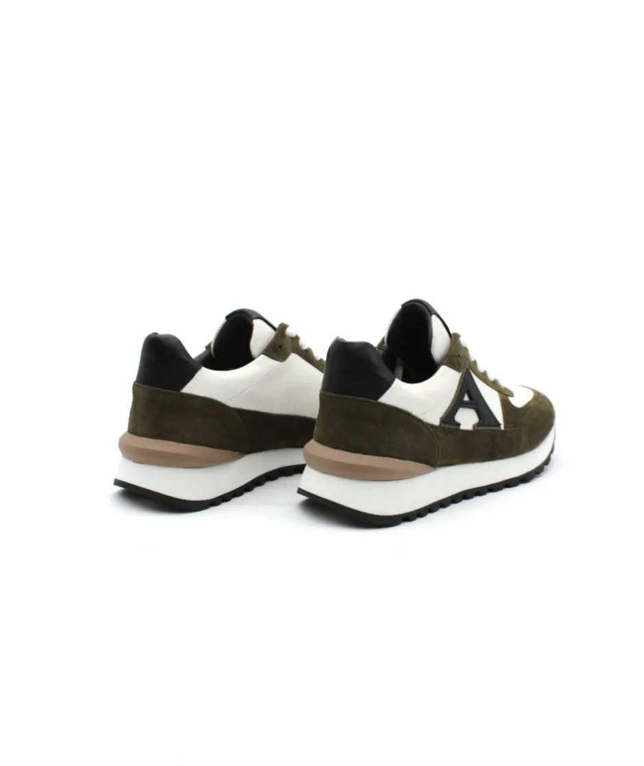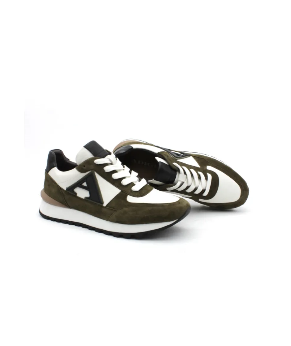 Une basket de ville élégante, un mélange de matière original et une semelle en caoutchouc confortable, la marque française ADIGE dévoile YARI-106 en cuir velours kaki sur une semelle blanche.