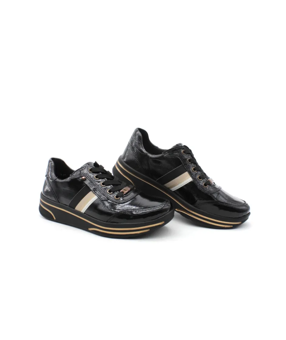 Cette basket sportive 12-32442-21 d’ara est un must have grâce au mélange de matières et de couleurs très tendance un véritable plaisir pour les yeux. Elle dispose d’une largeur confortable en H, qui offrent suffisamment d’espace aux pieds pour plus de bien-être. L’intérieur en textile doux enveloppe délicatement le pied et renforce le sentiment de confort. L’utilisation de semelles orthopédiques personnelles ne pose aucun problème avec cette chaussure, car elle dispose d’une semelle intérieure amovible. De plus, la technologie HighSoft intégrée la rend particulièrement confortable, garantissant une marche souple et détendue. Les larges lacets constituent non seulement un eye-catcher, mais permettent également d’adapter la chaussure aux besoins individuels. La semelle antidérapante garantit quant à elle un pas plus sûr. De par sa légèreté, cette chaussure peut être portée sans souci toute la journée et s’avère être un compagnon parfait pour les longues promenades ou les excursions en famille.