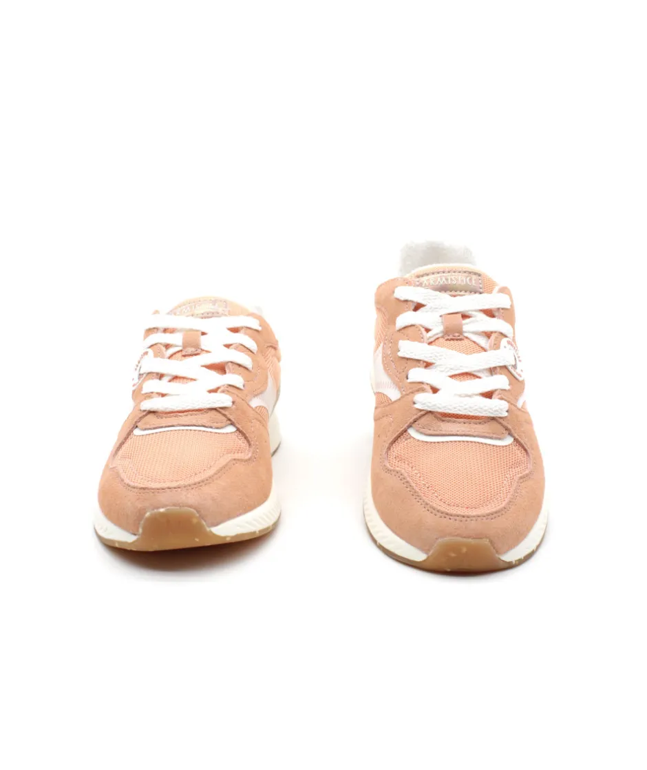 Armistice nous dévoile sa dernière création, moderne, dans l’air du temps et respectueuse de l’environnement. En effet la basket COOL RUNNER W s’habille d’un textile couleur abricot issu de matière recyclée. Légère et confortable, la sneaker affirme son look moderne et branché avec son super choix de mix matières et ses lignes originales. Sa semelle en gomme vous apportera quant à elle tout le confort souhaité.