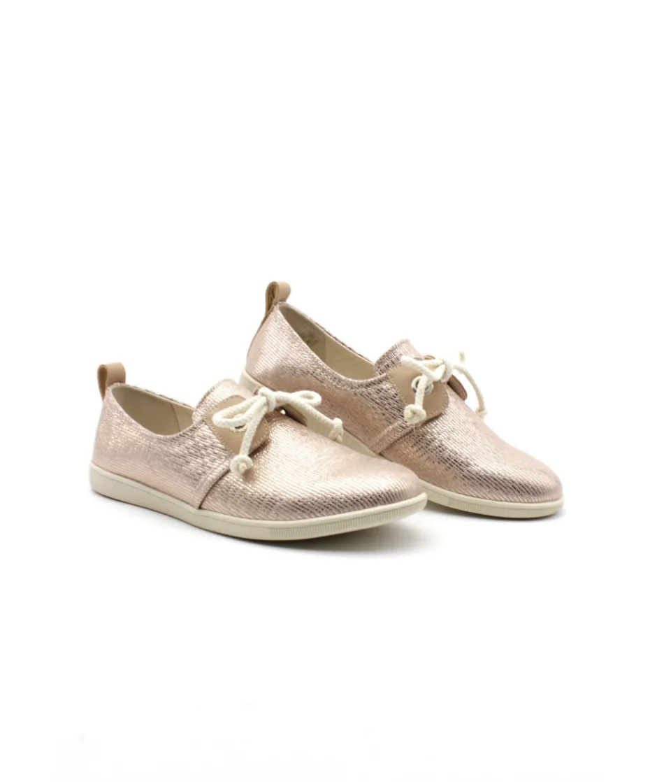 Armistice réinvente de nouveau sa petite tennis fétiche pour toujours plus d’originalité ! Cette fois la Stone One W Sun revête une toile métallisé couleur cuivre qui vous fera briller tout au long de la journée. Les lacets ronds apporte de la simplicité à la petite basket. On aime sa semelle plate et légère qui donne beaucoup d’aisance dans vos mouvements. Pas de doute c’est elle qui vous accompagnera tout l’été !