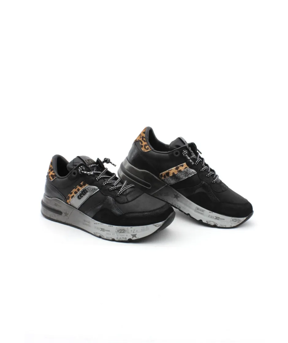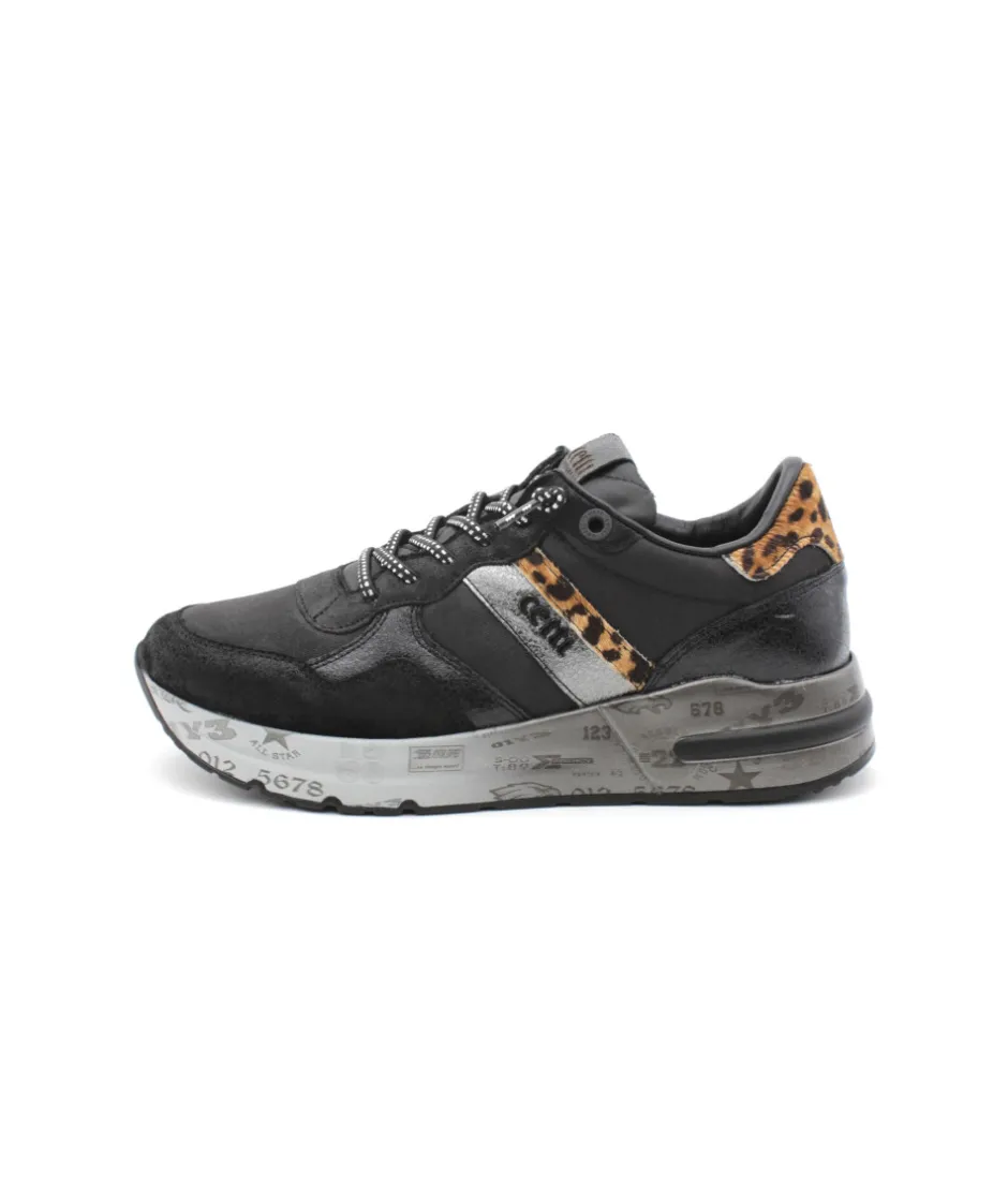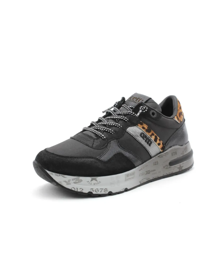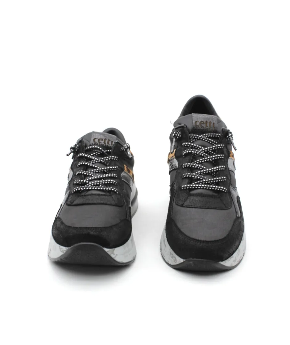 Nouvelle forme cette saison avec l’arrivé du modèle C1274 SRA SATURNO signé par la maison espagnole CETTI. Disponible en cuir couleur noir ou taupe, cette sneakers tendance nous surprend par son joli mélange de matière et de couleur…. Avec ses empiècements en cuir métallisé et son textile en léopard, cette basket habillera chacune de vos tenues.