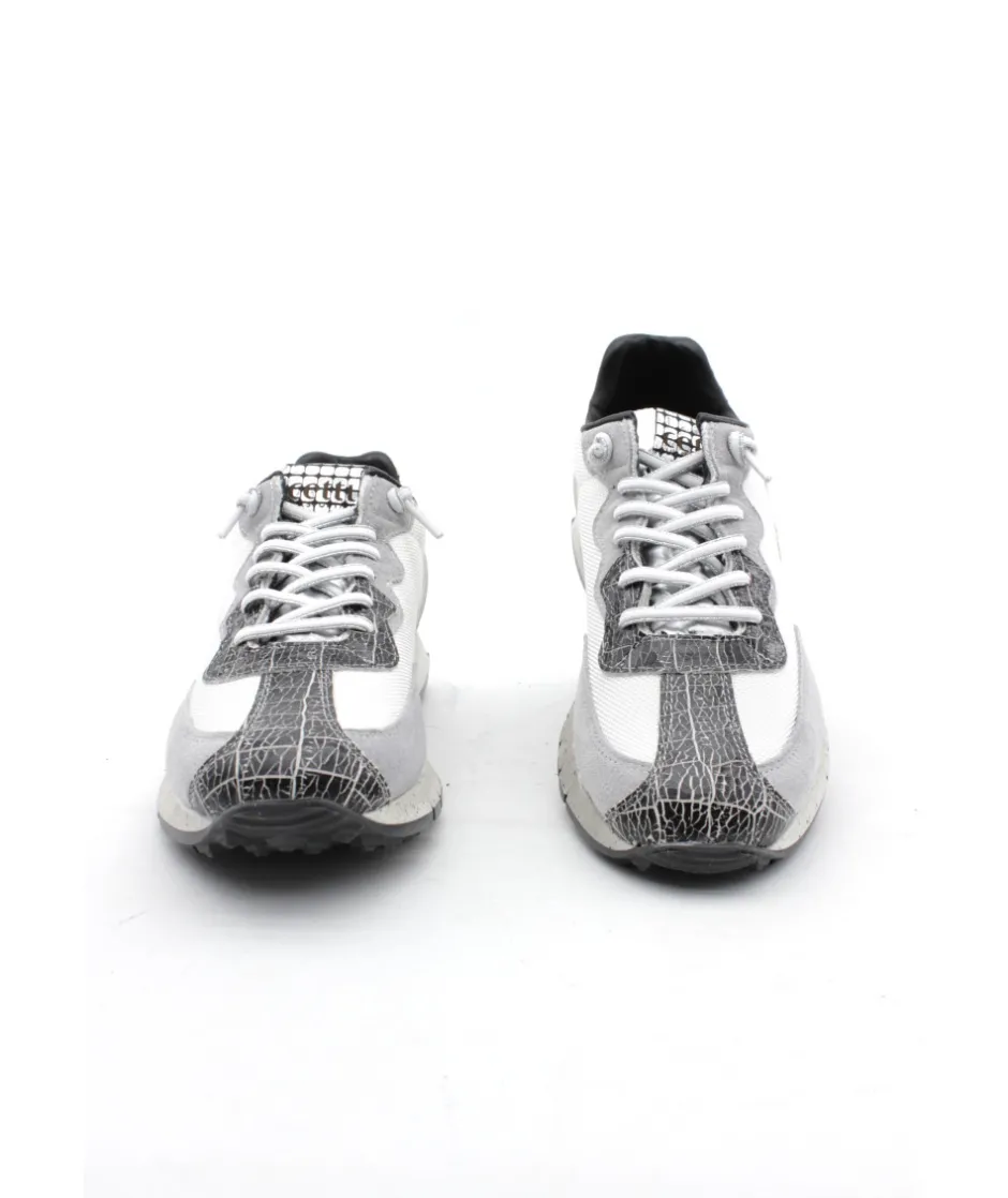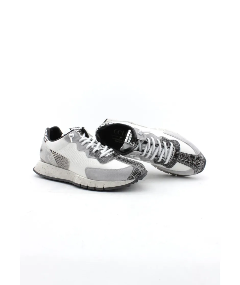Nouvelle forme cette saison avec l’arrivé du modèle C1293 SRA EXP signé par la maison espagnole CETTI. Disponible en blanc et bleu marine, cette sneakers tendance nous surprend par sa forme running et son joli mélange de matière et de couleur…. Avec sa touche de cuir imprimé croco, écaille et ses paillettes, cette basket habillera chacune de vos tenues.