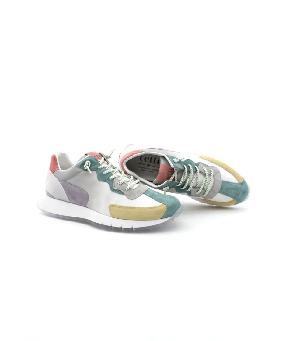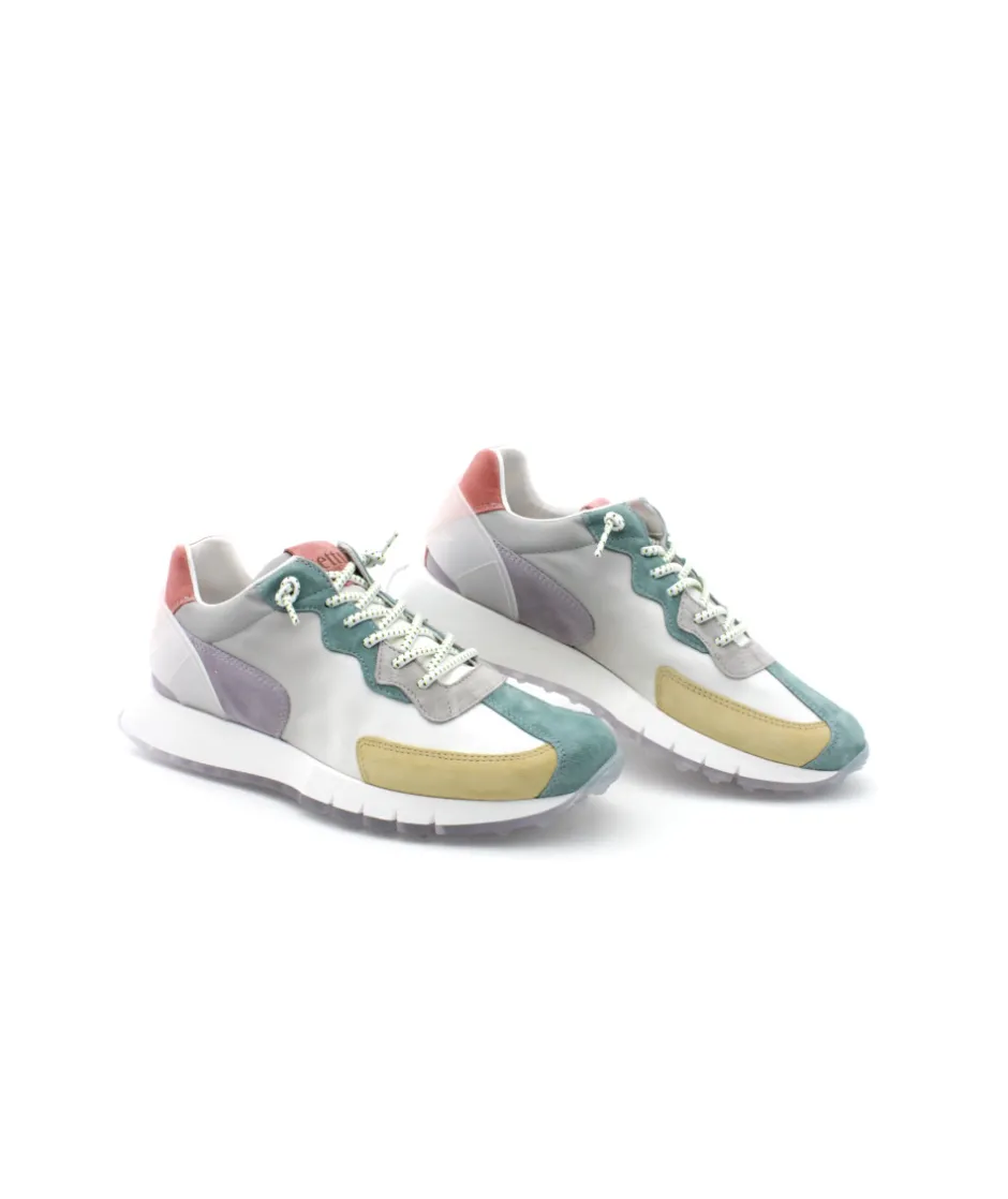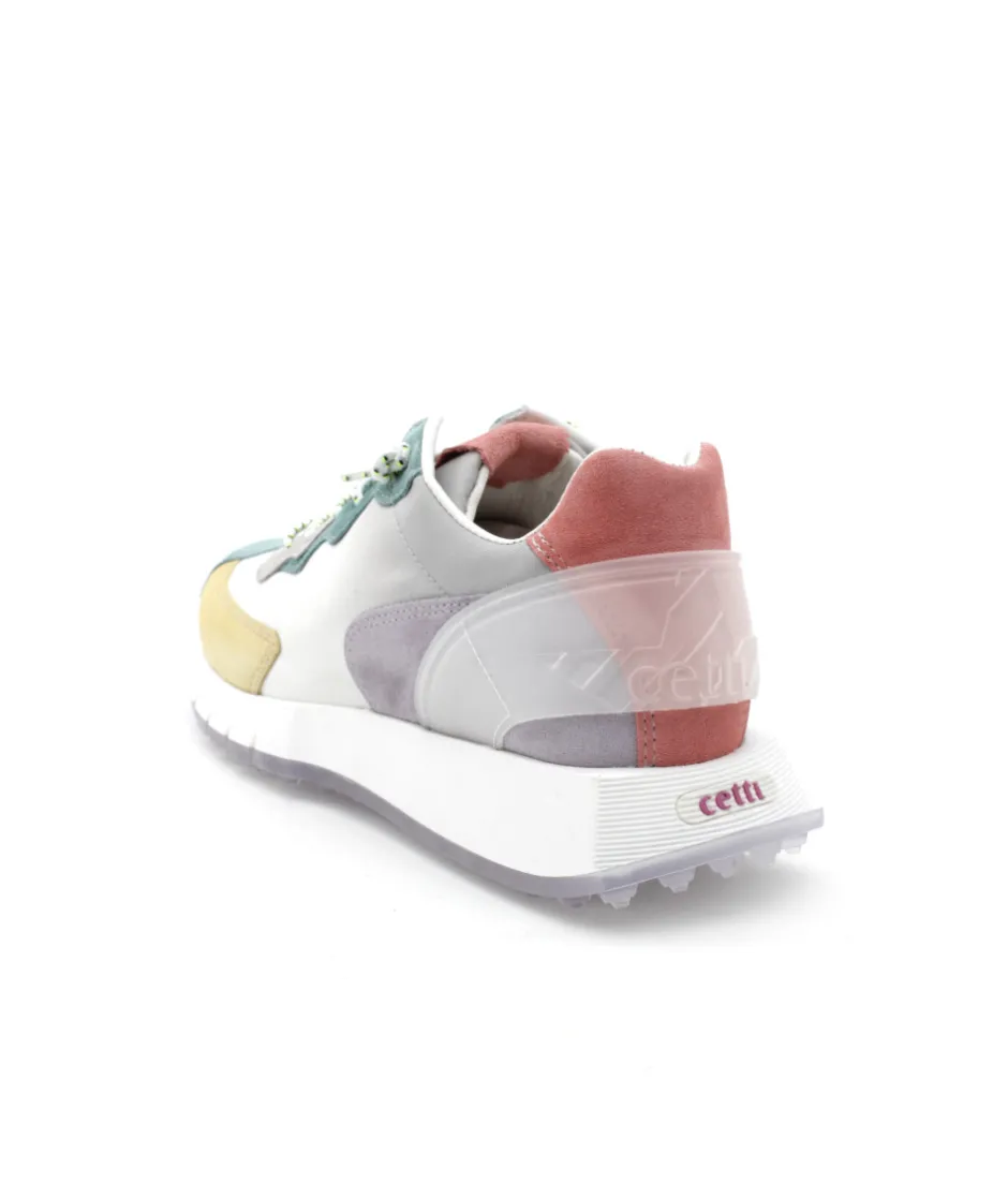 Nouvelle forme de la maison espagnole CETTI, le modèle C1293 SRA. Disponible dans sa version multicouleur jaune, vert, violet et orange, cette sneakers tendance nous surprend par sa forme running et son joli mélange de matière et de couleur…. Avec son look tendance, cette basket habillera chacune de vos tenues. Ses lacets élastiqués et sa semelle en cuir moussé amovible vous surprendront par son confort et sa facilité d’enfilage. Sa semelle en gomme épaisse, vous rehaussera de 4cm sans perdre de souplesse grâce aux fentes présentent dans la semelle.