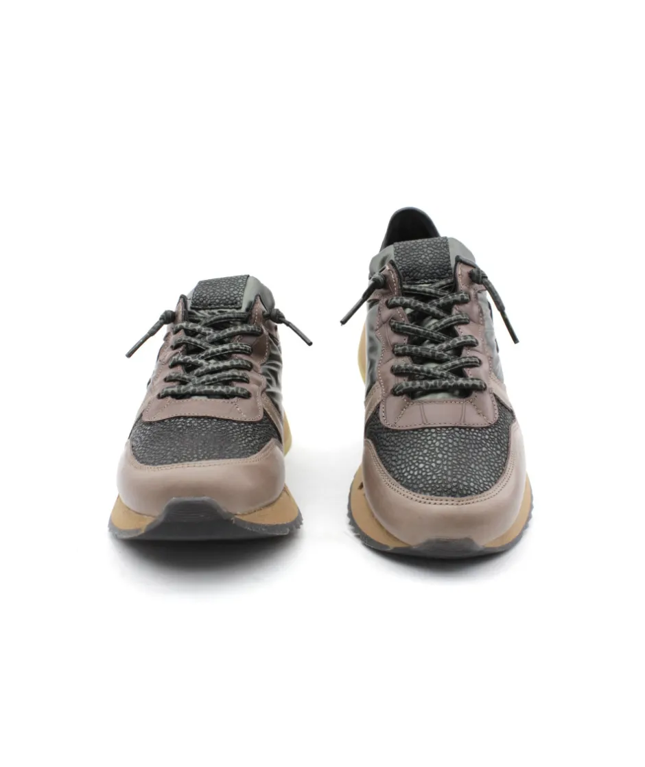 Nouvelle forme cette saison avec l’arrivé du modèle C1301 SWEET NATIVO signé par la maison espagnole CETTI. Disponible en cuir kaki, cette sneakers tendance nous surprend par son joli mélange de matière et de couleur…. Avec son imprimé serpent, croco et , ses paillette et ses lacets léopard, cette basket habillera chacune de vos tenues.