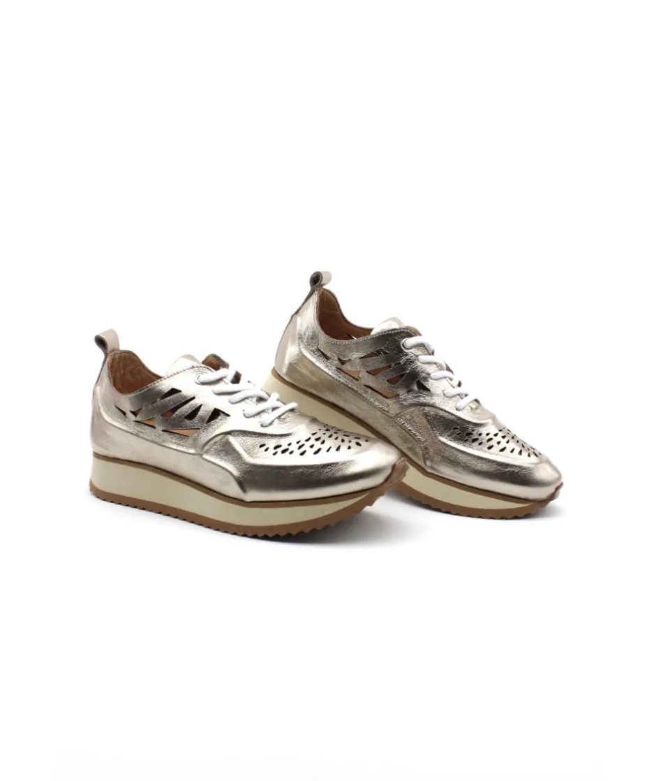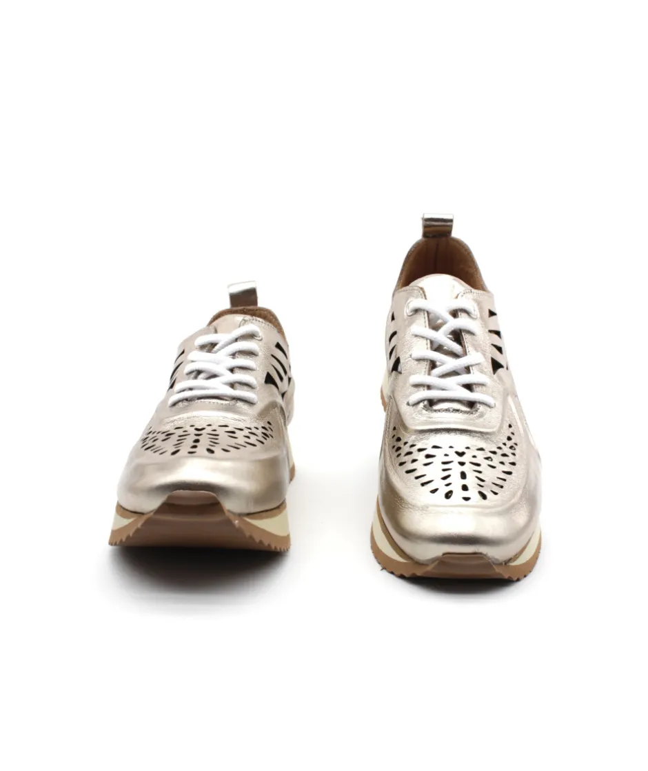 Nouveauté cette saison avec cette baskets ultra branché ! Coco & Abricot nous dévoile une nouvelle forme avec un style décalé et très looké ! Vous cherchez une sneaker mode et tendance, n’attendez plus, avec ESBLY V2807E en cuir métallisé champagne c’est le succès garanti ! Son cuir rembourré et perforé pour un style hors du commun, et une semelle épaisse très confortable pour vous accompagner tous les jours.