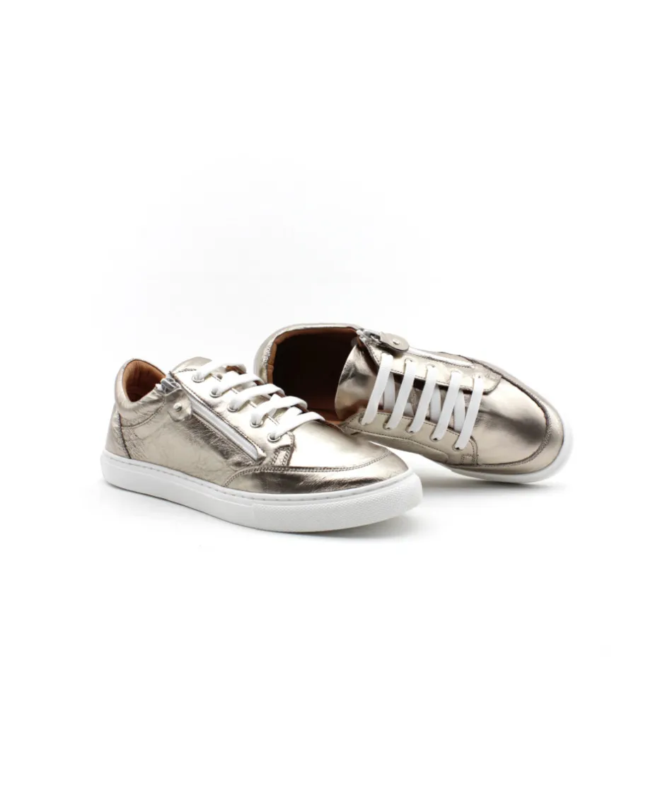 À la recherche d’une sneakers à l’allure sport chic ? Voici la création de la maison française Coco & Abricot MURON V2747A en cuir champagne (disponible en couleur crème également). Baskets moderne et élégante avec son lacet en coton plat, sa semelle blanche et son zip pour la praticité, elle a tout pour plaire. On aime sa semelle ultra légère qui vous offrira beaucoup de confort.