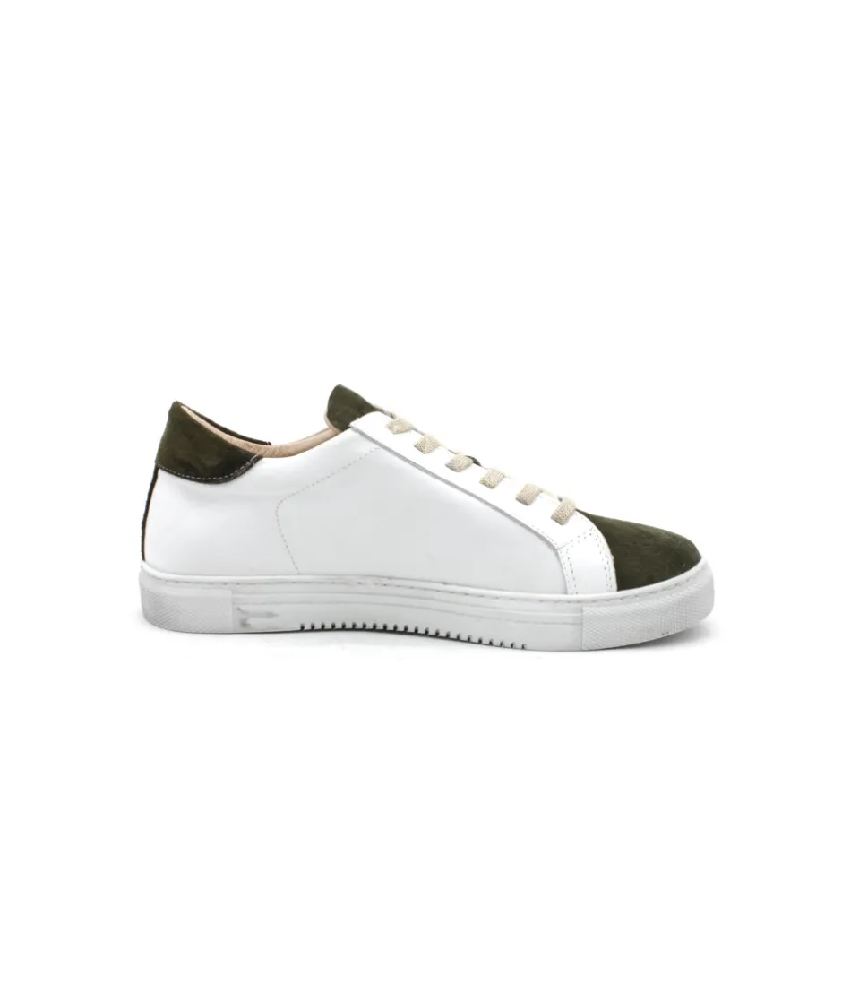 À la recherche d’une basket originale et confortable ? Voici le modèle Mediane de la maison française Fugitive dans sa déclinaison en cuir blanc et kaki. Un modèle qui ne manque pas d’originalité et qui séduit déjà les modeuses grâce son style bicolore et son logo en cuir cousu sur le côté de la chaussure. Du confort associé à un look tendance pour une chaussure que vous ne voudrez plus quitter ! N’attendez plus et laissez-vous tenter…