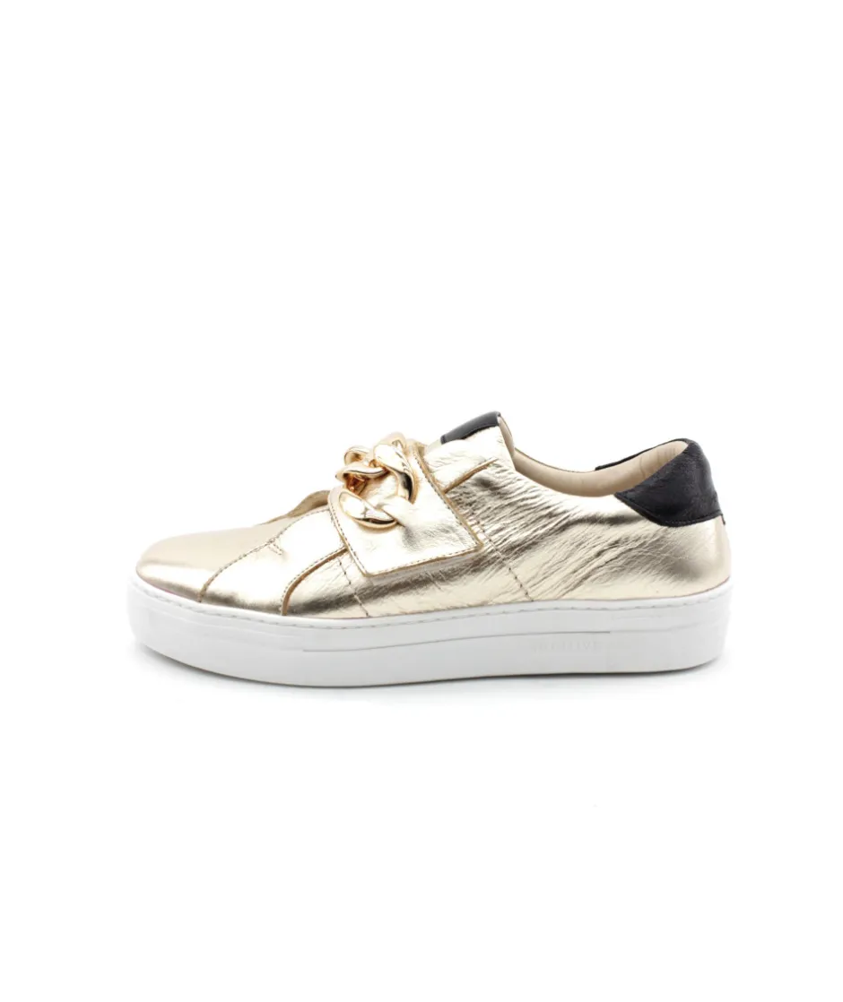 À la recherche d’une sneakers originale et tendance ? Fugitive, maison française reconnue pour ses créations moderne vous dévoile sa dernière création, MUCIA en cuir blanc et or. Montée sur une semelle compensée de 3 cm, elle laisse de côté le traditionnel lacet pour un velcro habillé d’un bijoux à la mode. Avec son look audacieux, elle sera la star de votre shoesing, alors n’attendez plus !