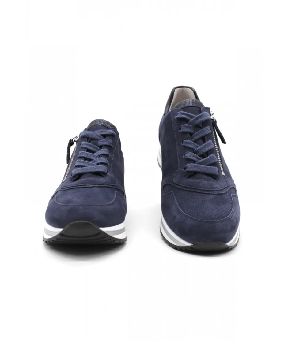 La maison allemande GABOR nous dévoile sa dernière création, le modèle 86.528.26 dans son coloris bleu marine vous fera craquer par sa légèreté et son confort de marche. Avec une semelle amovible, un zip de fermeture et un lacet ces sneakers sport chic deviennent le modèle pratique et tendance qu’il vous faut !