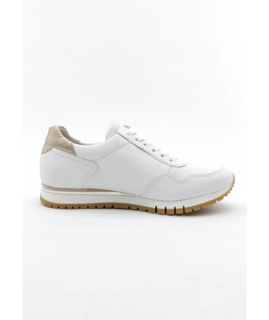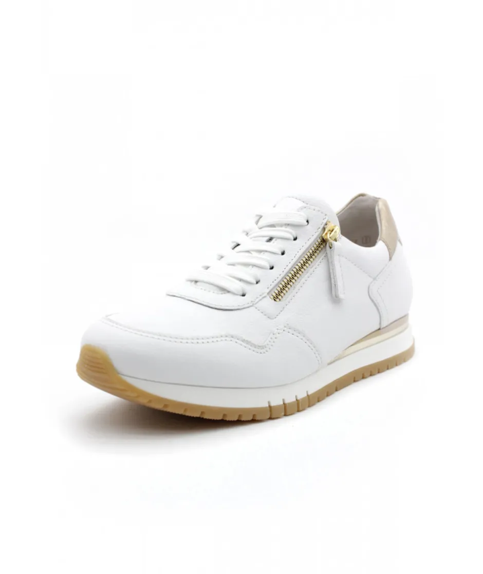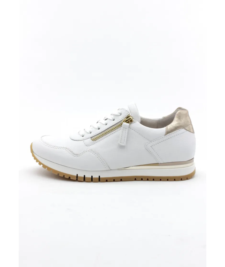 La maison allemande GABOR nous dévoile sa dernière création, le modèle 86.378.51 dans son coloris blanc (disponible également en bleu) qui vous fera craquer par sa légèreté et son confort de marche. Avec une semelle amovible, un zip de fermeture et un lacet ces sneakers sport chic deviennent le modèle pratique et tendance qu’il vous faut !