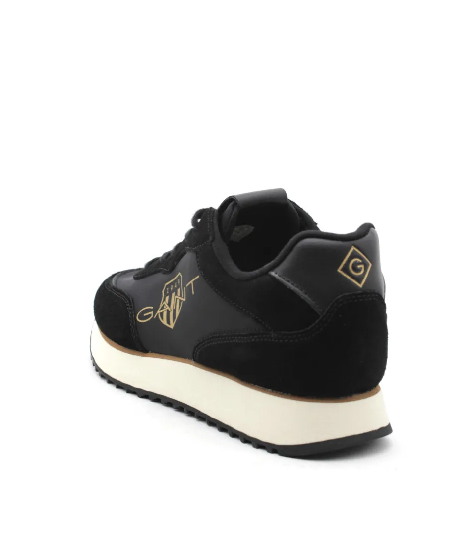 Jolie basket Sportwear noir signée GANT. Avec son look Sport / Urbain, la basket BEVINDA G00 vous assures un succès certain. Une toile et un cuir velours couleur noir sur une semelle beige crantées et le logo de la marque posé délicatement sur le côté couleur or, c’est la combinaison parfaite de la basket qu’il vous manquait ! N’attendez plus et optez pour cette sneaker ultra-légère et confortable grâce à sa semelle en caoutchouc.