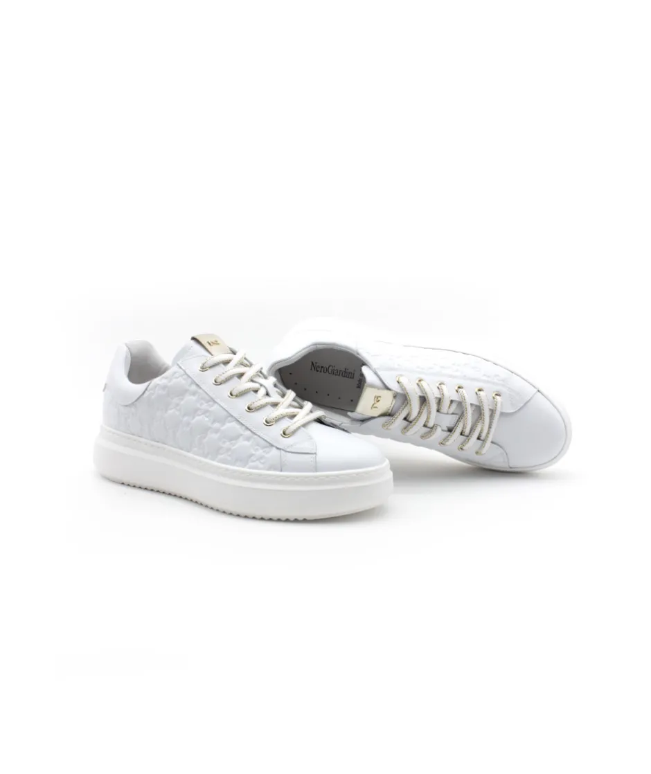 À la recherche d’une basket originale et tendance ? Nerogiardini a créer pour vous la sneakers parfaite avec le modèle E409915D qui s’habille d’un cuir blanc accompagné d’un cuir frappé au logo de la marque italienne sur le côté de la basket.