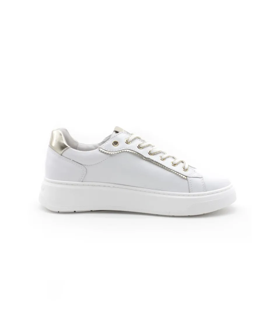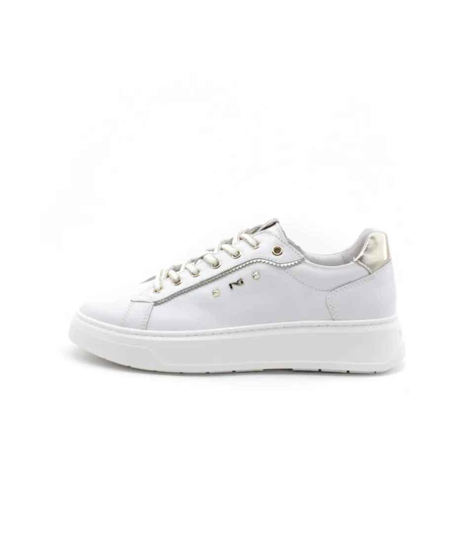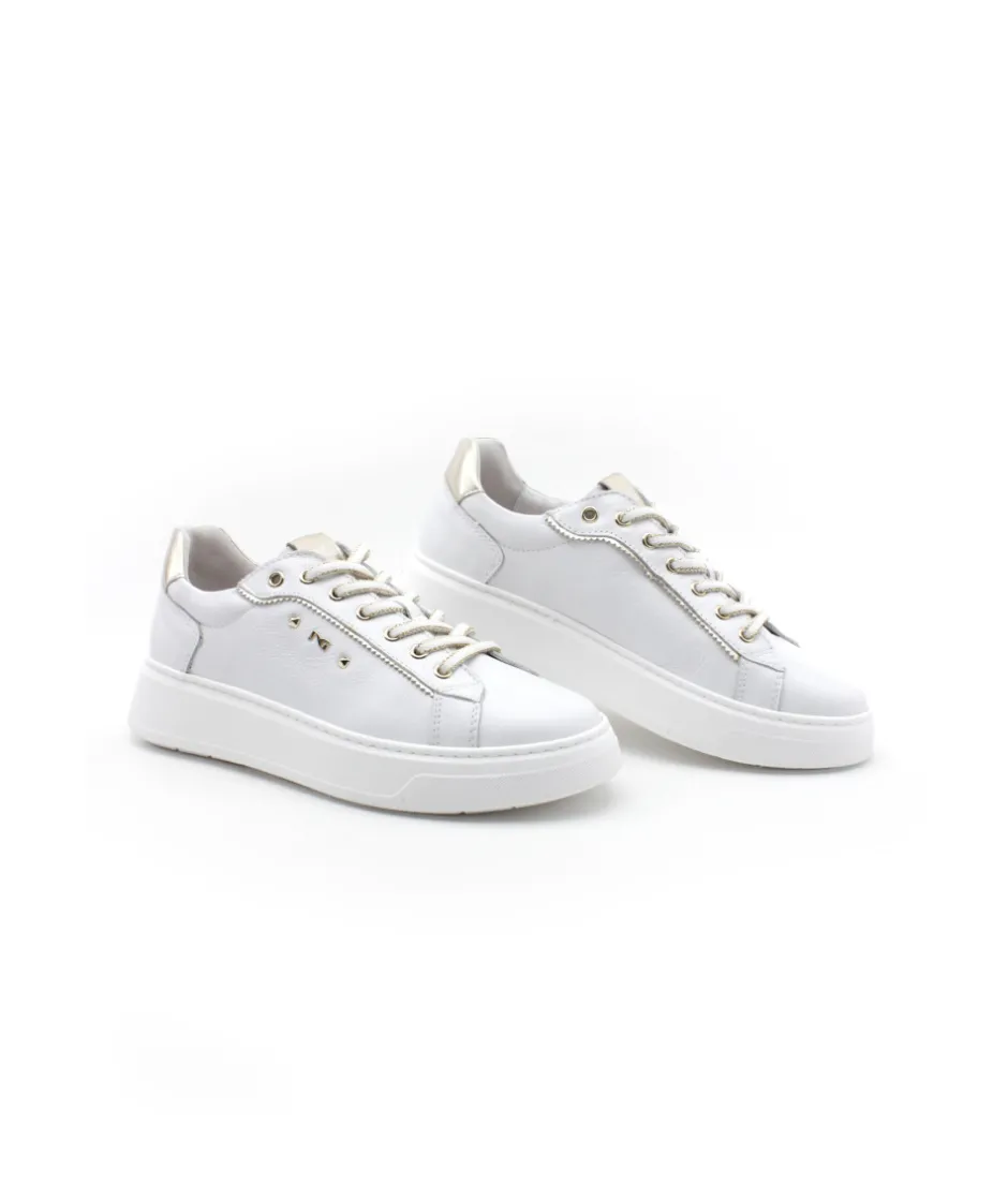 À la recherche d’une basket originale et tendance ? Nerogiardini a créer pour vous la sneakers parfaite avec le modèle E409977D qui s’habille d’un cuir crème accompagné par quelques jolies touches dorées.