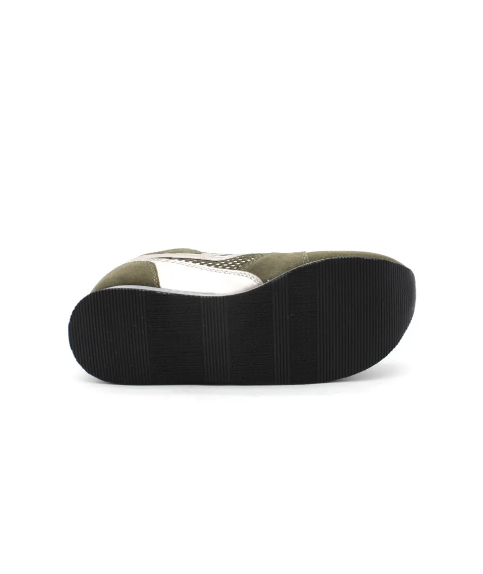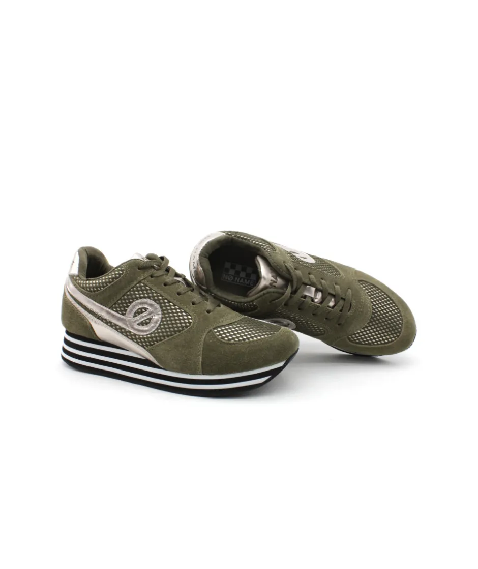 La PARKO JOGGER a traversé les époques en devenant une référence de NO NAME grâce à son style bien à elle. La recette de cette longévité ? Des lignes fluides tirées du streetwear des années 90 pour un résultat 100 % vintage. Une sneaker qui devrait faire de l’oeil à toutes les nostalgiques adeptes d’une silhouette urbaine ultra féminine. Pour cette nouvelle saison, la basket s’habille d’un cuir velours couleur kaki et des empiècements platine. On aime les rappels de la marque en platine sur le contrefort et le côté pour un look affirmé. Légère et confortable, vous ne lui résisterez pas !