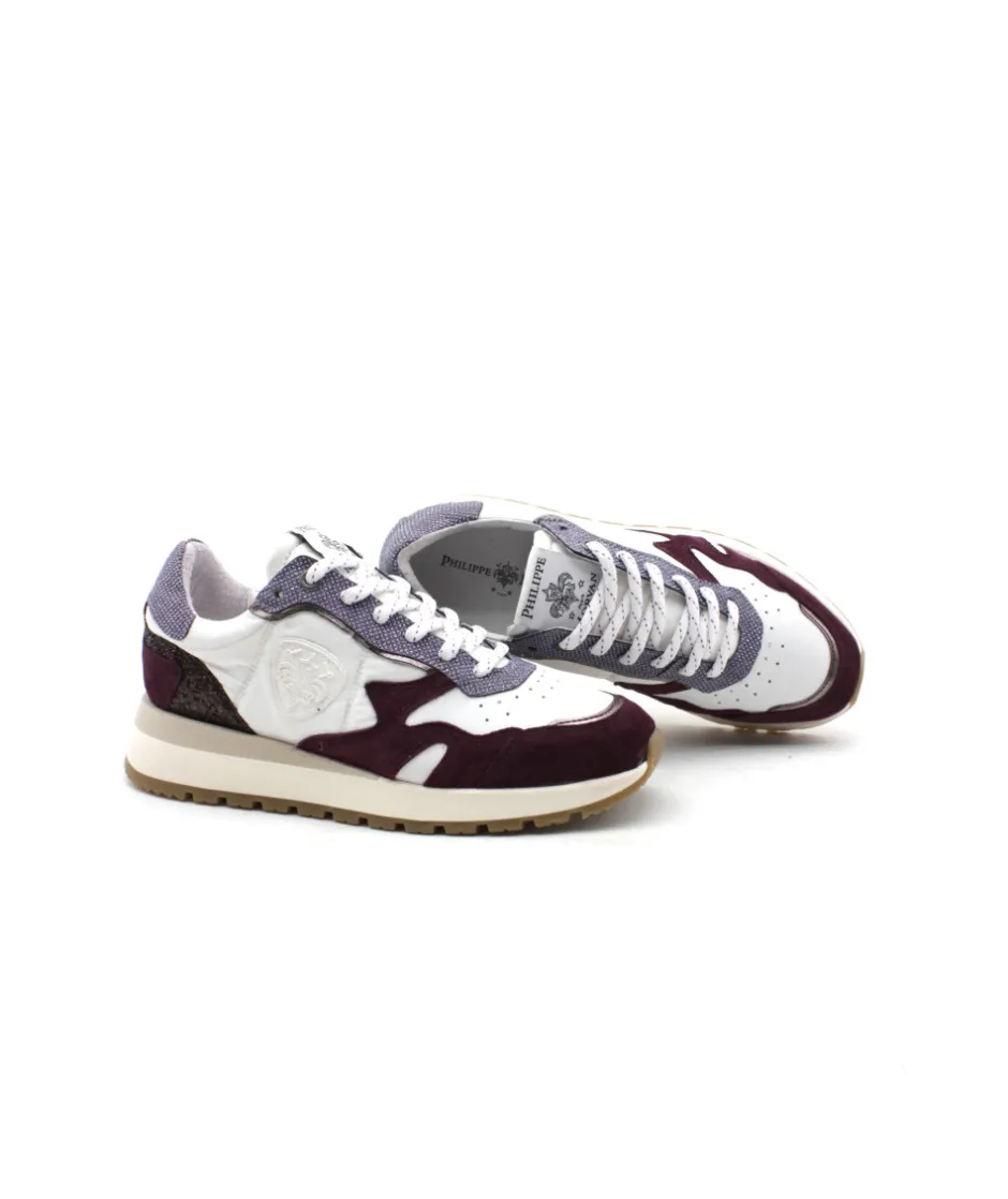 Pari réussi pour PHILIPPE MORVAN, qui vous propose une chaussure au look sport chic : Le modèle 6011/01, stylé et avant-gardiste s’habille d’un mix de matière en passant par le cuir lisse, le nubuck ainsi que les strass. Le tout dans des tons blanc et prune assemblé sur une semelle bicolore running. On aime son style audacieux et l’originalité du mix de matière. Sa semelle en caoutchouc absorbera les chocs pour un confort à toutes épreuves tandis que son lacet vous offrira un maintien optimal ! Plus de doutes c’est elle qu’il vous faut !