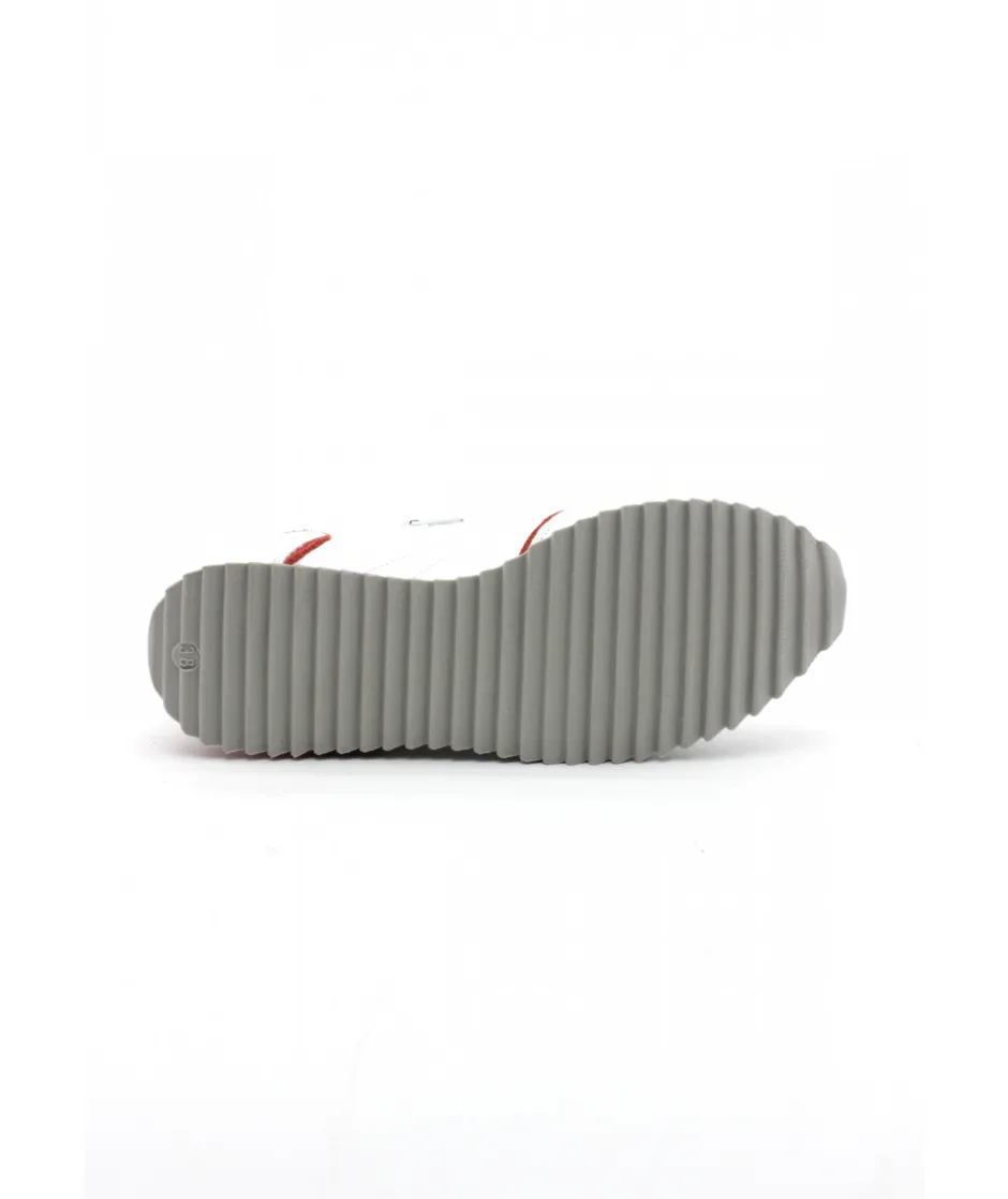 Pari réussi pour PHILIPPE MORVAN, qui vous propose une chaussure sport dans un look élégant : Le modèle RAVOX, stylé et avant-gardiste qui s’habille d’un mix de cuir et de textile blanc et rouge sur une épaisse semelle blanche.