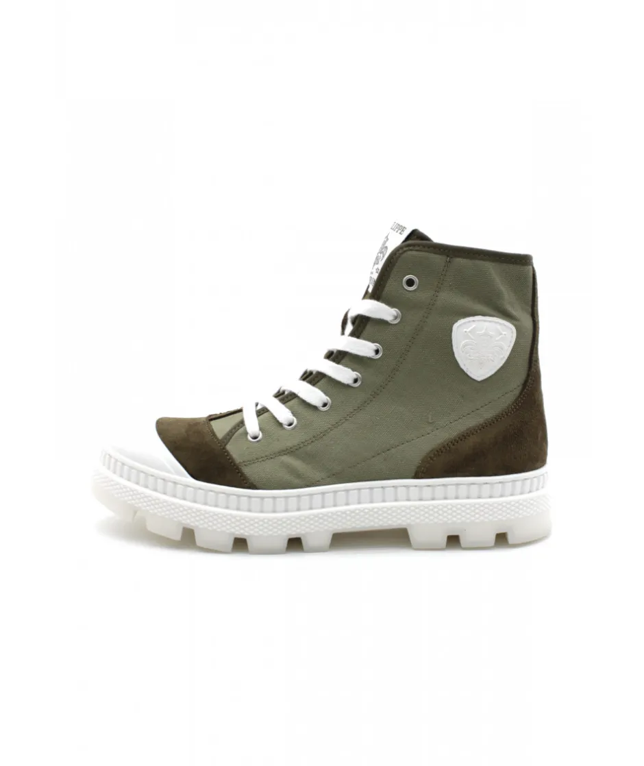 Sublime basket montante hors norme. Voici la dernière création de la marque PHILIPPE MORVAN avec son modèle TOOST 003 dans son cuir et textile kaki. Une chaussure audacieuse qui ne manque pas de pep’s et d’originalité !