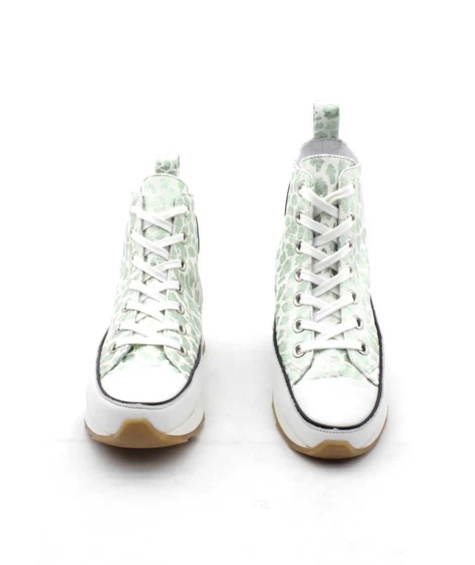 FRASNE H0756N, une basket ultra-originale pour un look tendance, voici la création de ROSEMETAL. Sur une grosse semelle compensée et une palette de couleur disponible, la mode est à vos pieds ! Une semelle blanche imposante, un dessus en cuir imprimé léopard vert,… pas de doute c’est le must-have de cet saison ! Confortable et looké, on aime le logo sur le côté pour le petit plus !