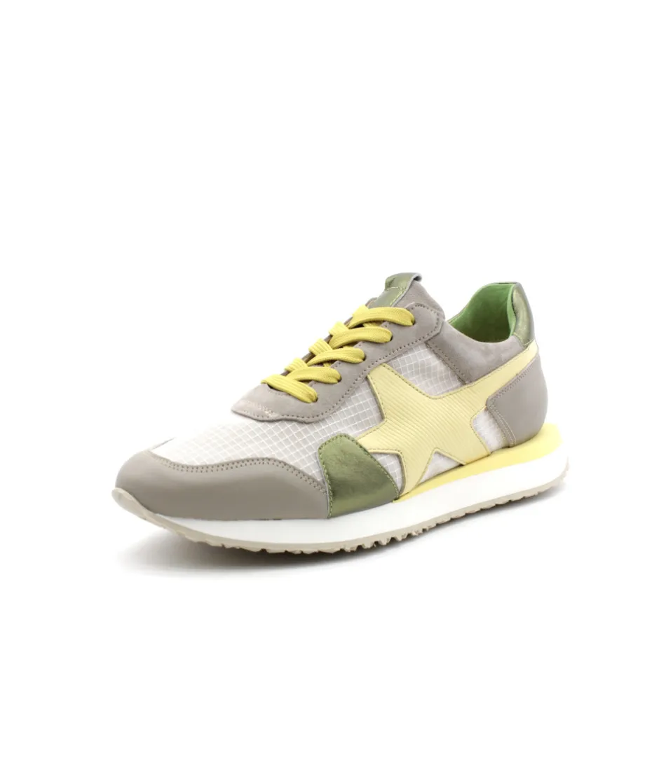 Une jolie basket, haute en couleur et un look atypique, on vous présente le modèle 8.72.02/12 BREA de la maison portugaise SOFTWAVES. Avec un look toujours plus tendance et originale, les créations de cette marque rendent accros toutes les modeuses. Sur une semelle bicolore sportwear, la sneaker est assemblée sur un mélange de cuir gris, jaune et vert, sa semelle légère en gomme vous offre tout le confort souhaité.