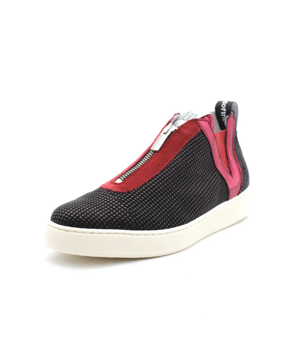 Marque reine des chaussures atypiques, la maison espagnole VADDIA nous dévoile une nouvelle création riche en couleur ! Voici la basket AZIR dans un cuir / textile rouge et noir. Pleine de charme, ces baskets montantes se parent d’un zip sur le dessus du pied et d’un joli élastique sur le côté. Son mix de couleur vient se vêtir de strass pour affirmer son look féminin. Légère et souple, vous ne pourrez rapidement plus vous en passer ! N’attendez plus