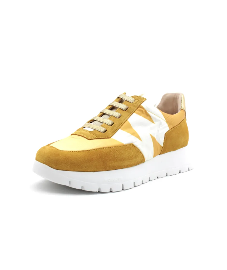 Vous cherchez une basket originale et audacieuse ? Voici la paire faite pour vous ! Avec sa semelle blanche épaisse et crantée, cette sneaker ultra-branché est parfaite pour toutes les modeuses. Une base en cuir et toile jaune qui offre un contraste élégant et féminin, on aime aussi l’imposant logo sur le côté pour le look moderne. N’attendez plus pour shoper le modèle A2463 qui allie confort, légèreté et tendance !